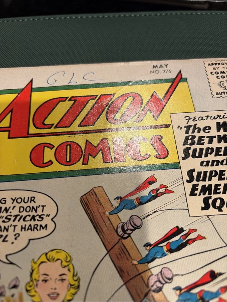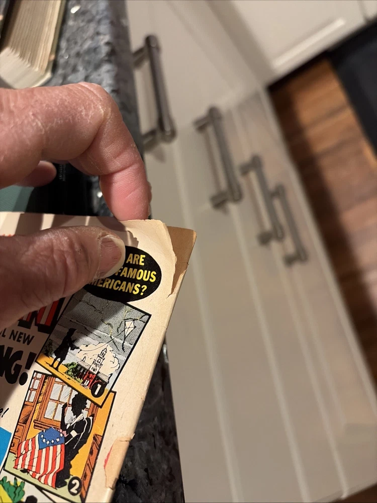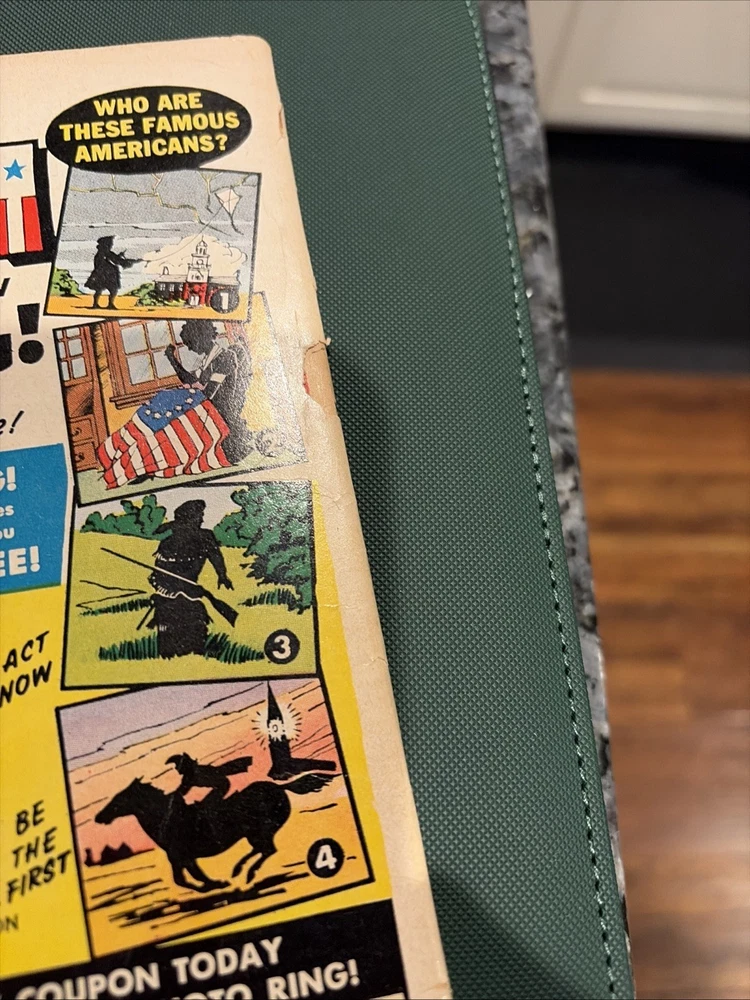 The comic is in VG TO VG- condition with cover and spine and corner tears and spine tears still attached at the bottom see the pics writing on the cover