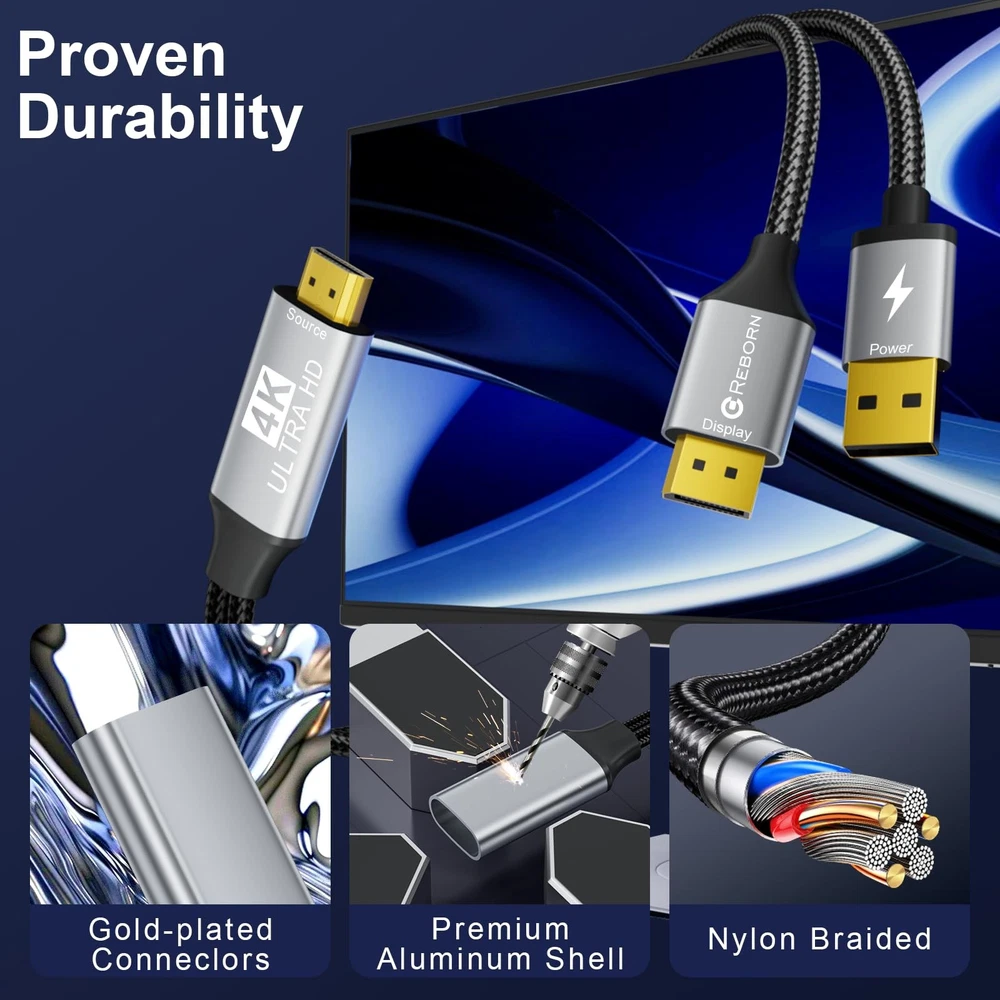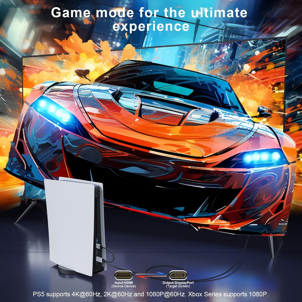 HDMI Male to DisplayPort (DP) Male Adapter with USB Power Supply This adapter converts HDMI signal to DisplayPort output, allowing you to connect HDMI devices to DisplayPort monitors with high-quality video transmission. Connector: Input: HDMI Male (wired) Output: DisplayPort Male (supports up to 4K@60Hz, compatible with 2560×1440@60Hz and 1920×1080@60Hz) Power Input: USB-A Male (requires +5V/1A minimum for stable operation) Specification: Resolution Support: 4K@60Hz, 2560×1440@60Hz, 1920×1080@60Hz Material: Gold-plated connectors for optimal signal transmission, aluminum alloy casing for heat dissipation Installation: Plug and play, no drivers required Note: USB-A power must be connected first to enable video output (for devices with insufficient power supply) Package Contents: 1 × HDMI to DisplayPort Cable 【Amazing 4K Visual Effects】Leading 2K and 1080P resolution HDMI to Displayport Cable enables extraordinary visual clarity in stunning 4K UHD resolution at smooth 60Hz, perfect audio pass-through to immerse you in true cinematic enjoyment. Backward compatible with 1440P@60hz and 1080P@120hz.【Note: Be sure to connect the Micro power cable for optimal display. Cannot be used with any Hub/KVM/Docking/Switch. VR is not supported】 【Unlock HD Gaming Experience】HDMI Source to Displayport Monitor for PS 5, Xbox One/360/S series, steam dack. allows you to connect your game console to the big screen. Note: This HDMI TO DisplayPort cannot increase the native resolution of the game, 【Xbox series will be displayed at 1080p@60Hz, PS5 supports up to 4K@60Hz resolution】 【Plug and play, wide compatibility】This Active HDMI to Displayport Adapter is driverless and plug-and-play. Usage: Insert the HDMI male interface into devices such as computers. Connect the DP interface of the adapter to the DP interface of display devices such as monitors with a DP cable. Insert the Micro USB power port for the best display effect. Note: This is a one-way converter specifically for converting HDMI signal sources to DisplayPort monitors. It does not support DP-to-HDMI or HDMI-to-USB 【Extraordinary Ruggedness】The Dp to HDMI Cable features a thin, lightweight aluminium unibody housing for superior corrosion resistance, a sleek, modern look and better heat dissipation. 24K gold-plated connectors ensure superior durability under heavy use and multiple plugs and unplugs (10,000+ plugs and unplugs tested). 【】is dedicated to introducing superb-quality products that are sophisticatedly designed and reasonably priced for providing the best solutions to connect your work and life. Consult for fast and responsible support within 18hrs!