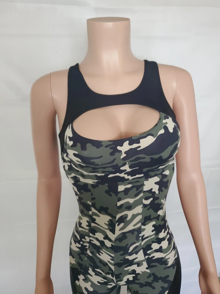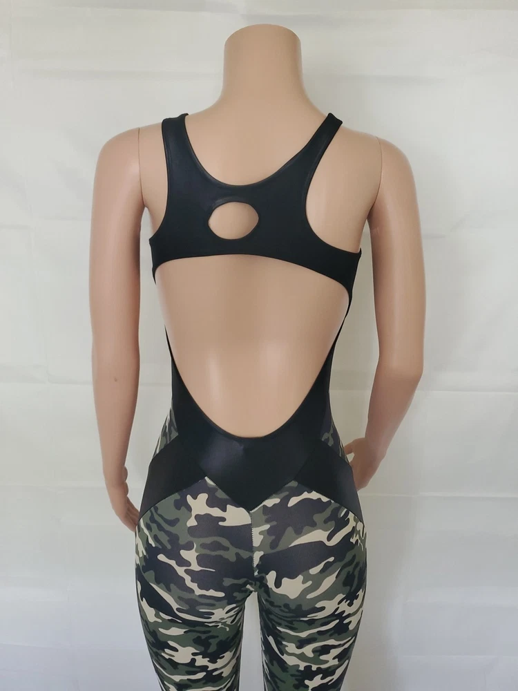 The product is a women's activewear top in size M from the Brazilian Industry brand. It features a solid military green color with a sleeveless design and a slim fit, made from spandex fabric. This top is designed for active occasions, with a sporty style suitable for summer and spring seasons. It also includes the feature of being reversible, adding versatility to the garment. Made in Brazil, this activewear top is perfect for those looking for high-quality fitness clothing with a stylish touch.