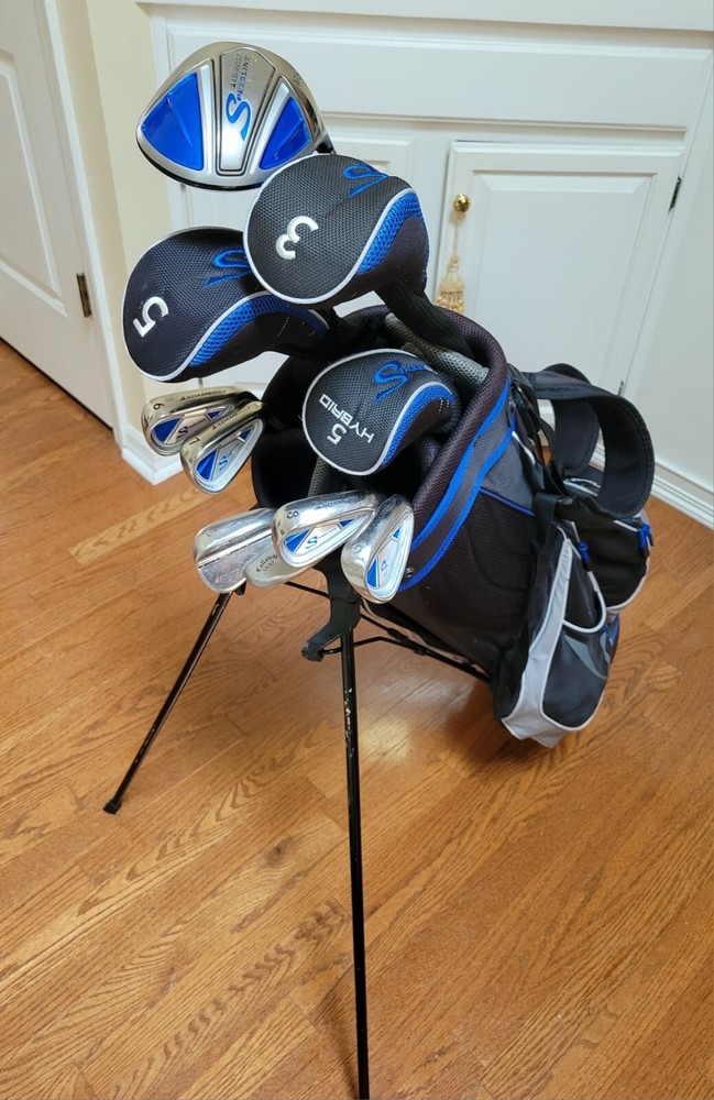 Overall good condition. This set includes Adams Speedline Driver, 3 wood, 5 wood, 5 hybrid, 6,7,8,9,SW, Callaway putter, matching stand golf bag. No pitching wedge. The driver has 2 dents on the top of the club but does not affect the performance. Right handed. Graphite Shafts for driver, woods and hybrid. Steel shafts for irons and putter. Good grips on all clubs. Please review each picture thoroughly. You will receive the exact golf set pictured. Shipped fast with tracking using UPS ground or FedEx. Only shipped to mainland US (48 states). No p.o. boxes. Thanks for shopping!