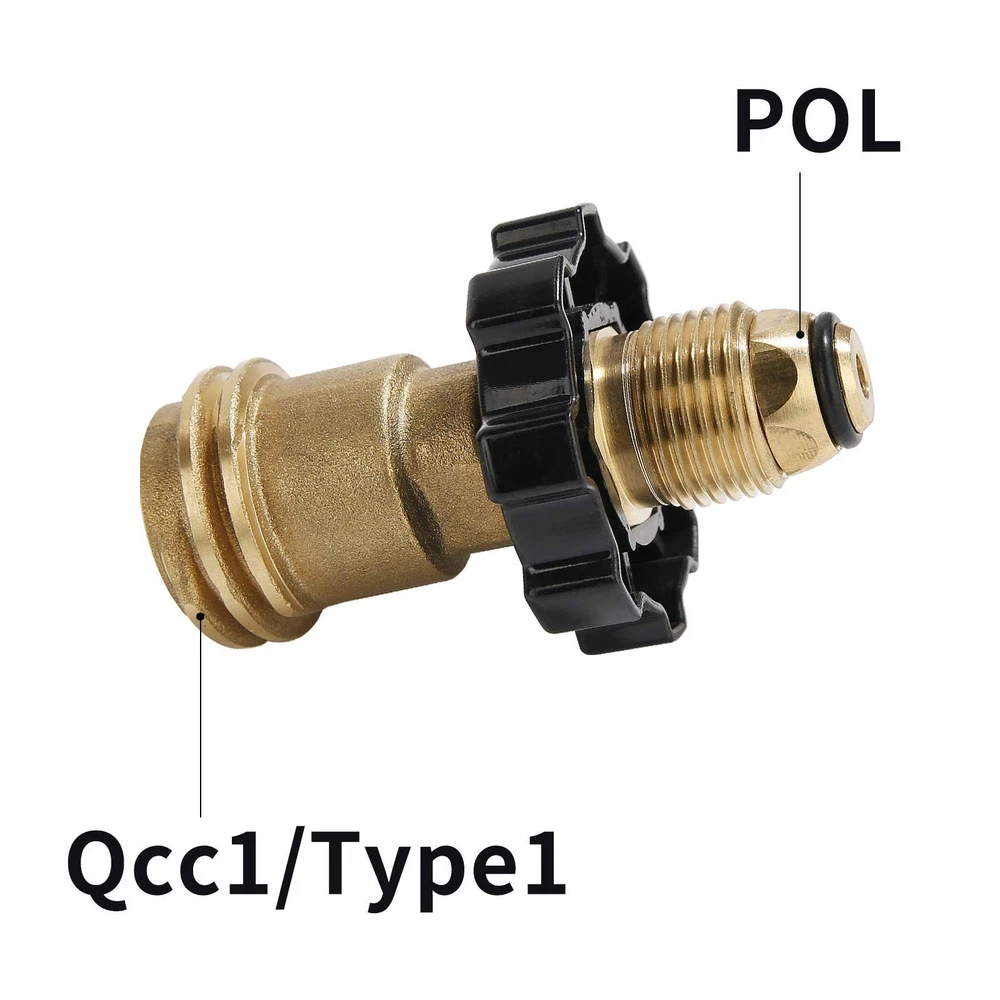 【MULTIPURPOSE】Great propane fittings for your BBQ, camping stoves, propane heater, or anything that uses propane. 【UPGRADED】Converts POL LP tank to Qcc1/Type1 hoses and regulators. 【SAFE】Provides secure and airtight connection between propane tank and gas grill. 【DURABLE】Solid brass construction to withstand weather, scratching, denting and corroding. 【EASY TO INSTALL】Just with handwheel grip for tightening.