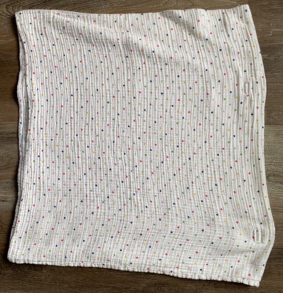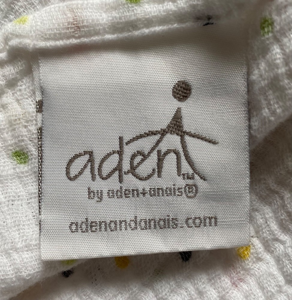 Aden by aden + anais white with rainbow polka dot muslin swaddling blanket Aden by aden + anais swaddling blanket *Muslin swaddling blanket *Size: approx. 39 inches by 40 inches *Fabric: 100% cotton *Color: white with rainbow polka dots *Condition: great, pre-washed condition with no stains, pilling, or wash wear *We have a smoke-free home.