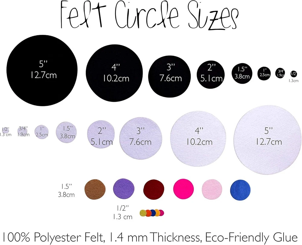 Adhesive Felt Circles: Variety of Sizes: ½”, ¾”, 1 or 1.5 48 Count 1.5 Black HIGH QUALITY. Our Adhesive Felt Circle Stickers are made with 100% Polyester Felt, Eco-Friendly glue and are 1.4 mm thick. MULTIPURPOSE. These Adhesive Felt Circles will be a favorite when it comes to arts and crafts! Add them to your accessories, costumes or DIY projects to create a quick and professional finish. VARIOUS SIZES. We offer sizes ½” to 5” in diameter in package sizes of 1x set to 5x Sets for Wholesale pricing. Choose Your Circle Size: ½”, ¾”, 1" or 1.5" in diameter and Package size 48x to 240x. More colors and sizes are available at our Amazon Storefront. Shipping We offer FREE shipping on all orders! We ship within Three business days of payment, usually sooner. We use a selection of shipping services such as UPS, FedEx, USPS etc. We only ship to the lower 48 states, no APO/FPO addresses or PO Boxes allowed. Local pickups and combined shipping options are not provided at this time. Return You can return a product for up to 30 days from the date you purchased it. Any product you return must be in the same condition you received it and in the original packaging. Please keep the receipt. Customer satisfaction is very important to us. If you have any problem with your order, please contact us and we will do our best to make you satisfied. Contact Us If you have any queries, please contact us via ebay. We usually respond within 24 hours on weekdays. Please visit our eBay store to check out other items for sale! Thank you for shopping at our store.