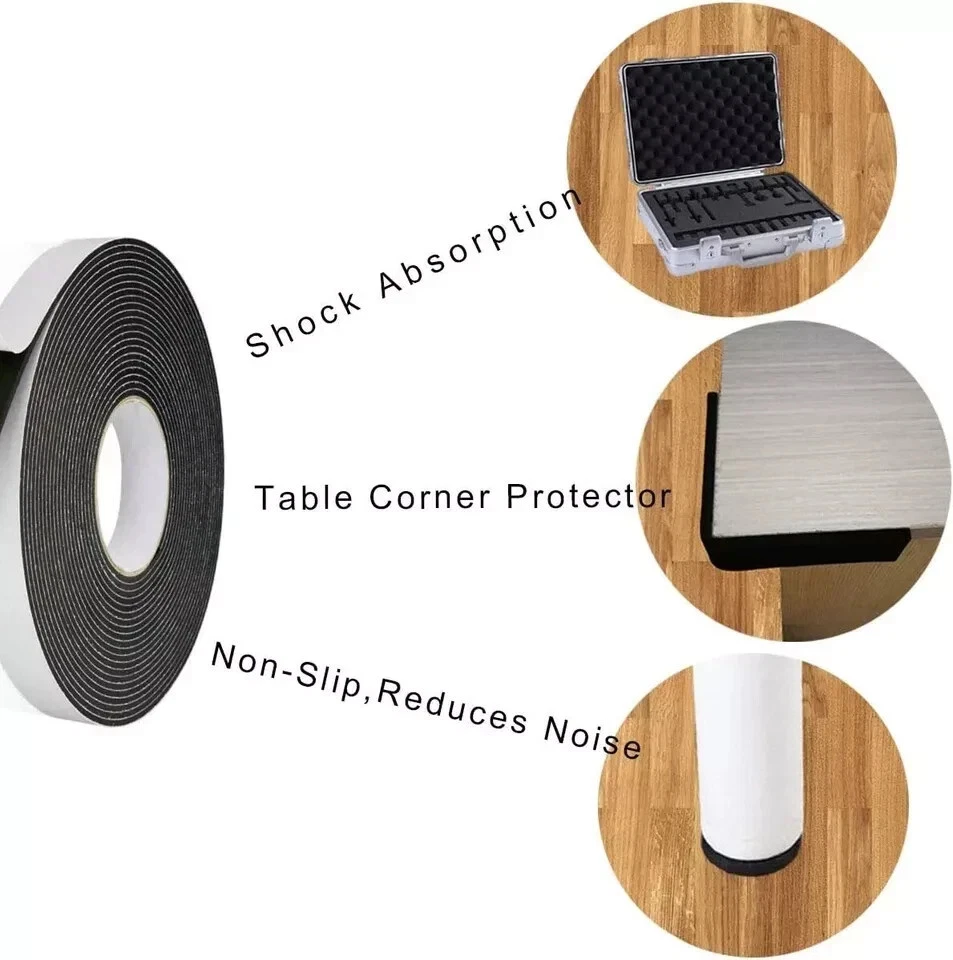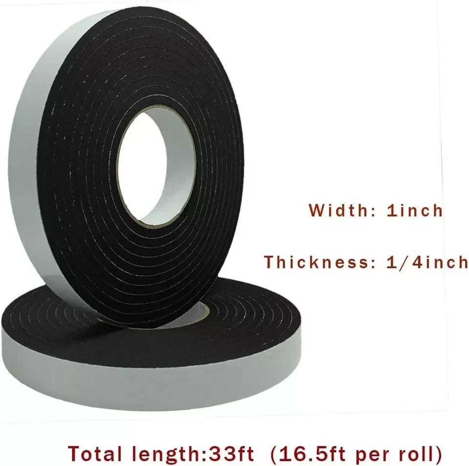 About this item Adhesive Foam Tape - This self adhesive foam tape are made from environmental protection EVA material with strong adhesive. Weather Strip - Strong adhesive backing, waterproof and non-degumming, stick firmly, but easy to remove and no residue,adhesive to various materials, great sticky foam strip for doors and windows. Soundproofing Tape - Foam seal tape, weather proof,shock-absorbing,dust proof, sound and heat insulation, anti-skidding and insulating,Reduce the noise from outside and the sliding door slamming,give you a quiet and comfortable living environment. Closed Cell Foam Tape - Easy to install,the weather stripping is high density,high resilience,flexible enough, can be cut and molded easily, will bend and conform to any shape. Foam Seal - This black foam tape is widely used in various door and window seal,furniture,electrical cabinets,cars,toy,handicraft,DIY,sports equiments, also use as speaker sealing tape,hat size reducer foam tape.【Artificial cutting,there may be an error of ± 0.6 ft in length. New and old packaging are shipped randomly】