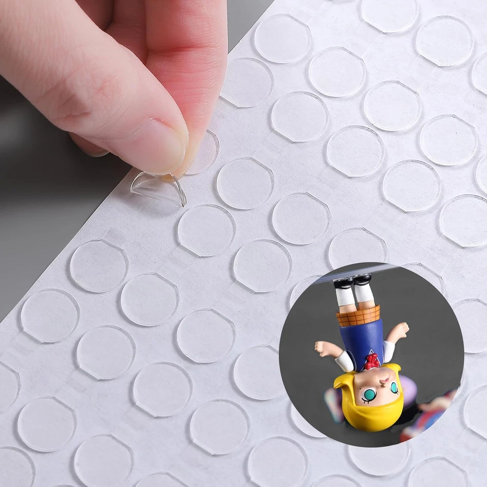 【Instant Hold & Strong Stickiness】Poster tack are highly viscous and absorbent and do not come off easily after being applied, keeping action figures standing and providing a quick and easy bonding solution. 【Easy Remove & No Residue】Adhesive is made of high quality acrylic adhesive material, which is flexible, transparent and unobtrusive. Can be easily removed or repositioned without leaving stains or sticky residue. 【Practical Use】Sticky are more transparent, no chemical odor, sticky and removable. You can completely get rid of the traditional liquid tape.faster, safer and cleaner. 【Easy To Use & No Mess】Instant stick adhesive, leaves no marks, no tools, no long time to wait for the dry, just peel off the adhesive paper and stick it where you want it, ideal for crafts and party decorations. 【Wide Application】Our Mounting won't ruin the beauty of your crafts and is easy to stick to the surface of paper, plastic, wood, leather, fabric, glass and most other items. You can use the adhesive for posters, scrapbooking, parties, Christmas decorations or other DIY crafts, perfect for home, office and school projects. Product Description Adhesive Stick, Two- Sided Mounting Stick Tack Adhesive Stick won't ruin the beauty of your crafts and is easy to stick to the surface of paper, plastic, wood, leather, fabric, glass and most other items. You can use the adhesive for posters, scrapbooking, parties, Christmas decorations or other DIY crafts, perfect for home, office and school projects. Ease of use Peel off the liner easily by pinching the adhesive with the thumb and forefinger of both hands and then pulling hard to the sides with your forefinger. Clean Removable Adhesive dots are made of high quality pp material, flexible, durable, transparent and unobtrusive. Can be easily removed or repositioned without leaving behind stains or sticky residue. Easy Remove Instant stick adhesive putty, leaves no marks, no tools, no long time to wait for the glue to dry, just peel off the adhesive paper and stick it where you want it, ideal for crafts and party decorations. Multi-scenario use Multi-scenario use Multi-scenario use Multi-scenario use Tip for easily removing stickers Peel off the liner easily by pinching the adhesive with the thumb and forefinger of both hands and then pulling hard to the sides with your forefinger.