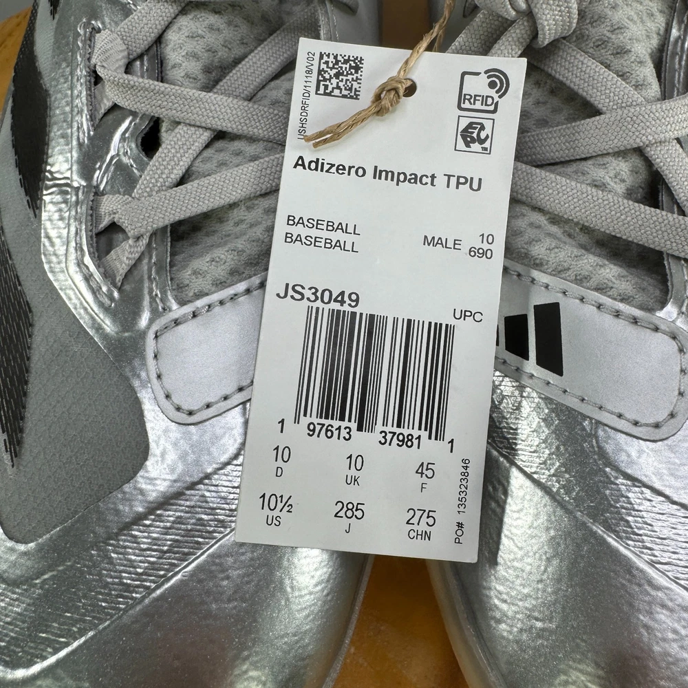Product Details Item Name: Adidas Adizero Impact TPU Men's Size 10.5 Baseball Cleats Silver / Gray NEW Condition: Brand New, No Box Style Code: JS3049 Size: Mens 10.5 (Sizes are listed as US equivalents) *Please be sure to look at all pictures before purchasing this item!* Shipping We always ship same day or next! (Unless otherwise stated. Excludes holidays/weekends) Payments Immediate Payment is Required. All payment methods are accepted. If there are any questions in regards to the product, please contact us. All products are 100% Authentic. Pictures are taken to the best of our ability to make sure you clearly know what you are getting. All of our pictures are of the actual product you will be receiving. Thank you for shopping with Salty Soles!