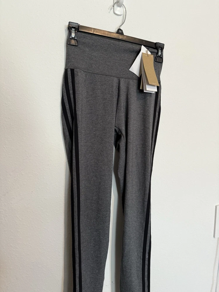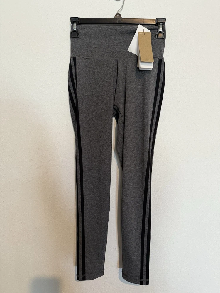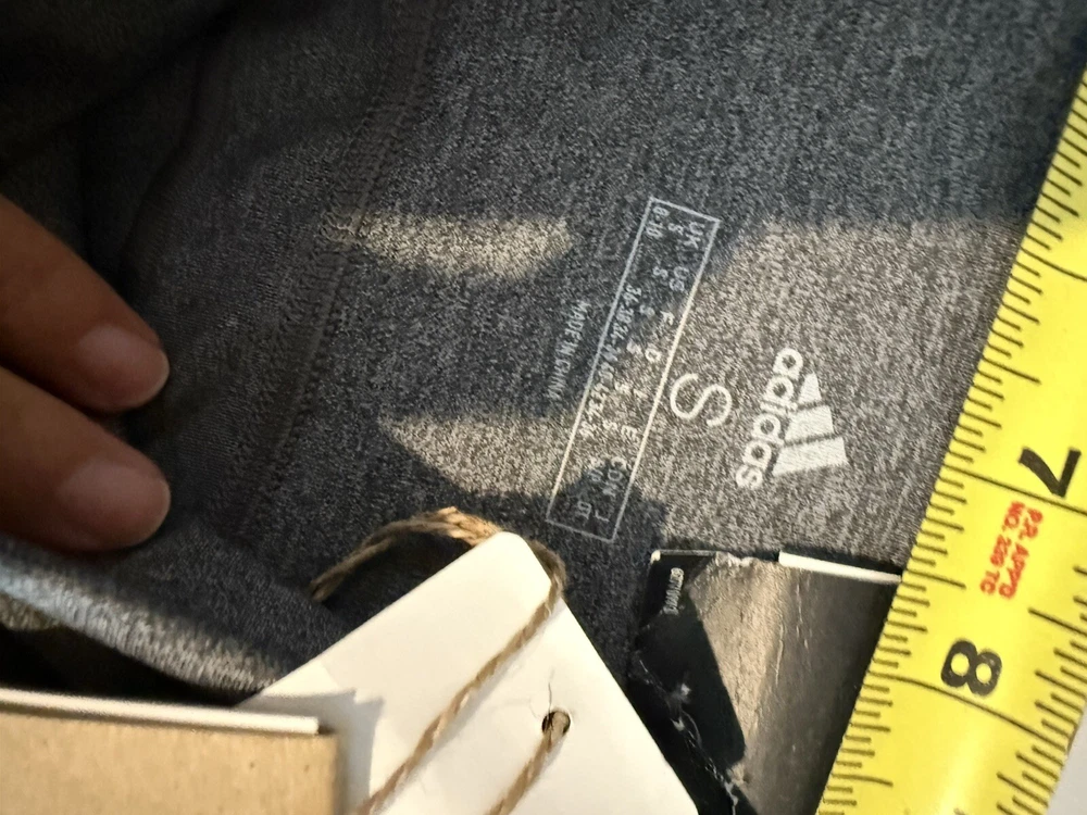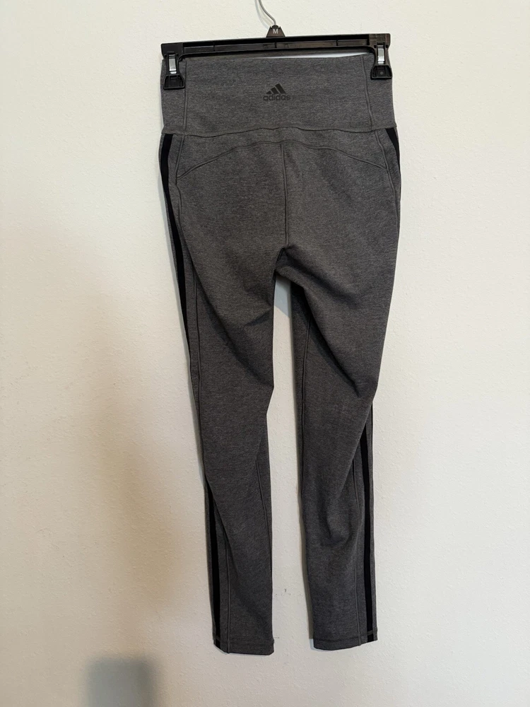 Adidas Aeroready 3 Stripes 7/8 High Rise Small Grey Women's Tights GL4043 feature a pull-on style with an elastic waist for comfort and stretch. Made of a polyester blend fabric, these ankle-length leggings are suitable for travel, activewear, and casual occasions. With the signature Adidas Training character, they are ideal for various sports activities like soccer, running, yoga, and more. The leggings are in a solid gray color with the Adidas logo, offering a sleek athleisure look.