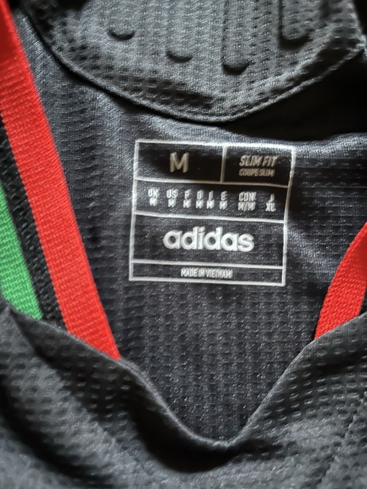 The Arsenal 2024/2025 Away Jersey is an authentic player version in size M, officially licensed by Adidas. This black soccer jersey is designed for men who support Arsenal, featuring the team's logo and branding. Perfect for fans looking to represent their favorite international club both on and off the field. The style code IT6147 adds a unique touch to this high-quality fan apparel and souvenir item. New never used just had tags removed. Size Medium fits slim