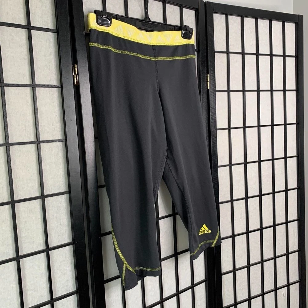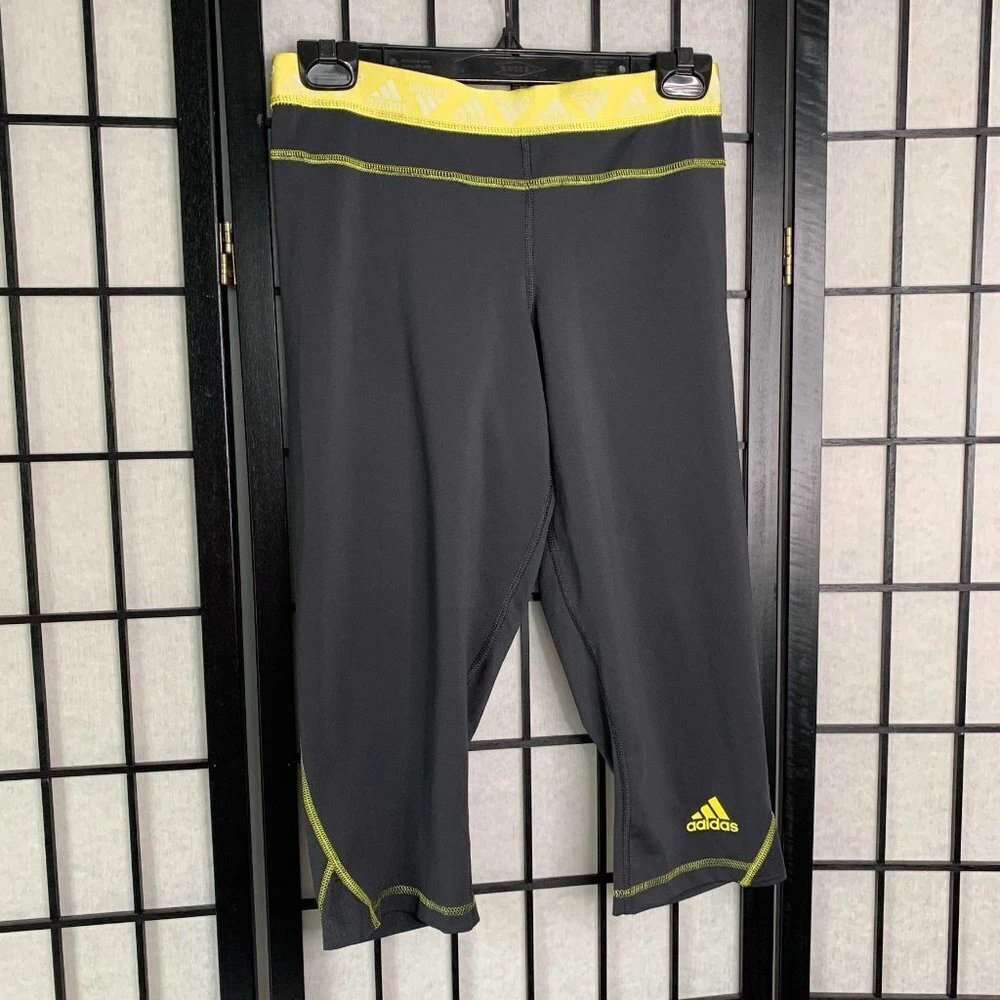 Adidas Athletic Crop Leggings Grey Size Small. See measurements in photos Pre-Owned, gently used. No major flaws, stains, holes, etc. See photos and ask questions. tags Have been removed Features: athletic, workout, yoga, running, reflective elastic waist Bx2