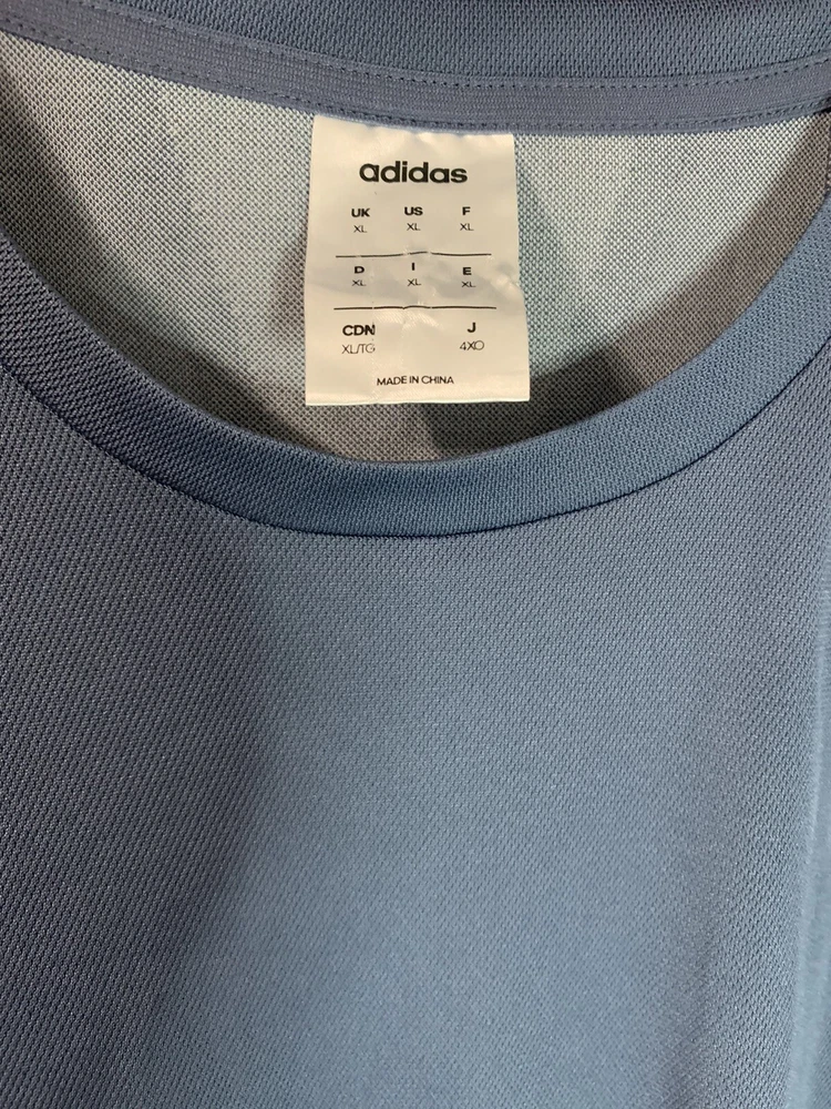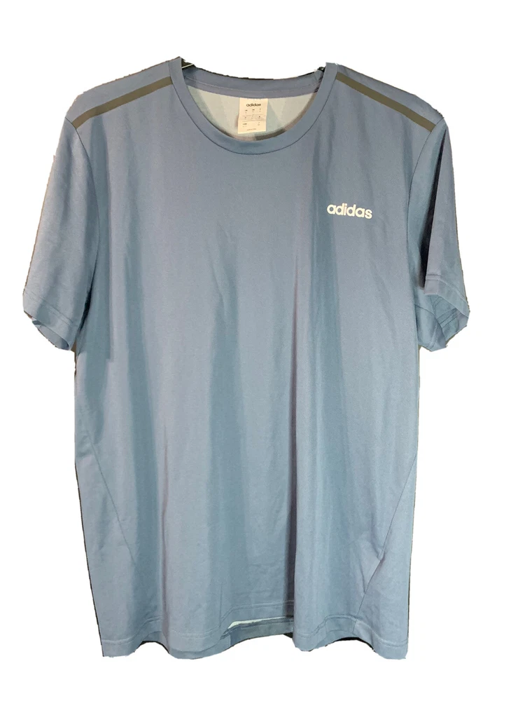 Fit:AthleticSize Type:RegularNeckline:Round NeckPattern:SolidType:T-ShirtAccents:LogoCountry/Region of Manufacture:ChinaFeatures:All Seasons, Breathable, LightweightColor:BlueBrand:adidasSize:XLSleeve Length:Short SleeveGraphic Print:NoDepartment:MenTheme:Sports, Work Out