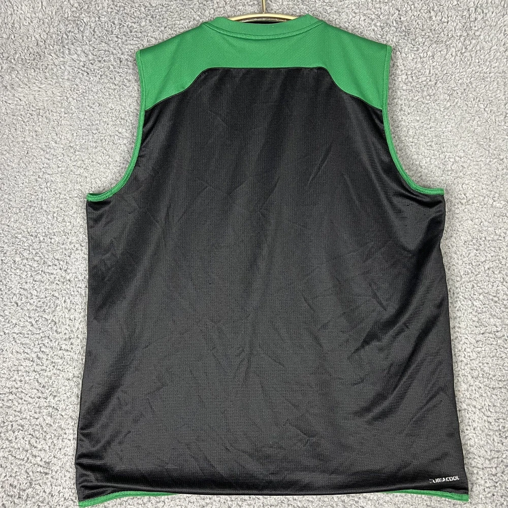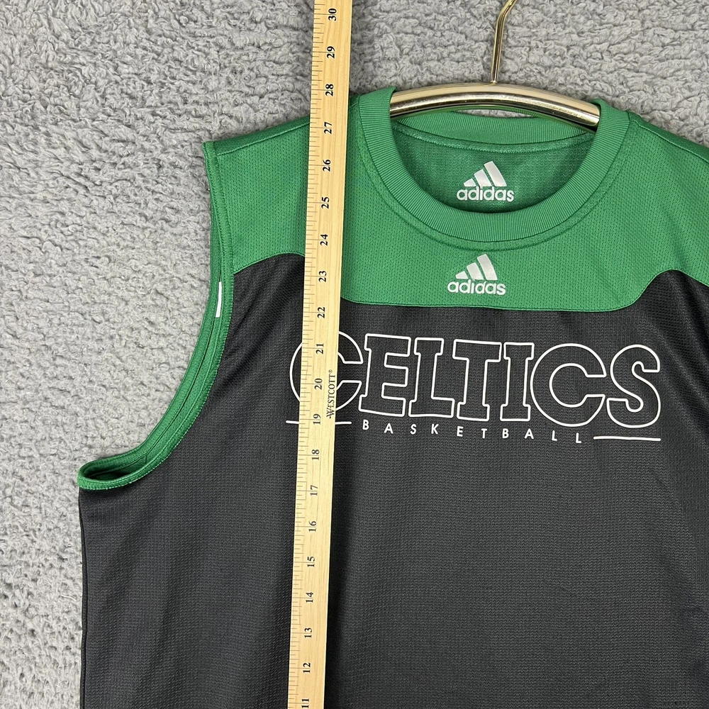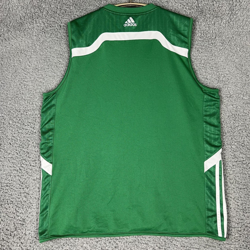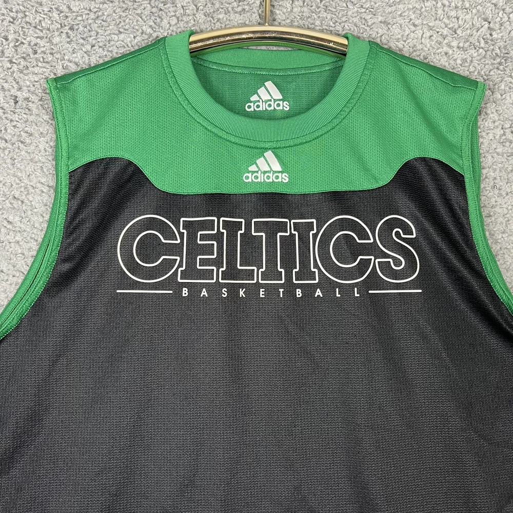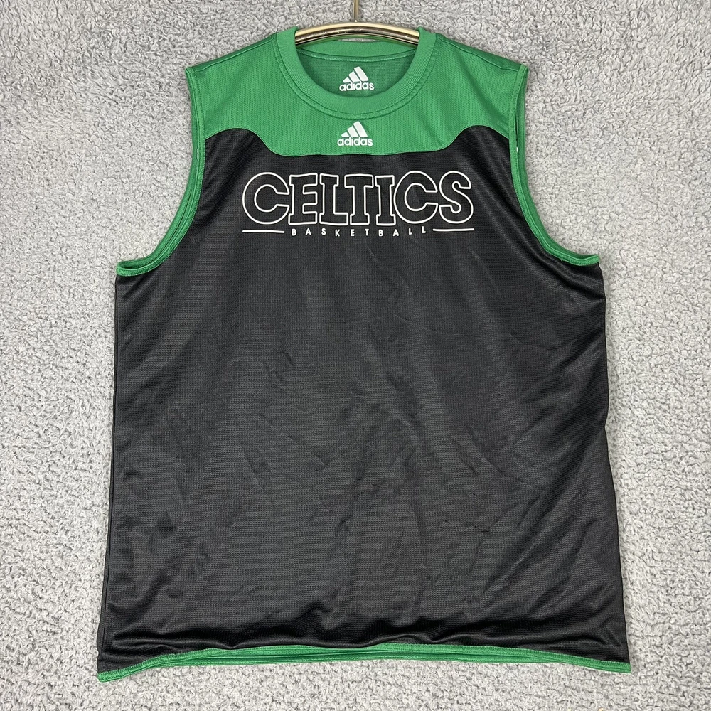 Represent the Boston Celtics with this Adidas reversible basketball jersey shirt, a must-have for any dedicated fan. It showcases the iconic green color associated with the team, as well as the team’s logo. Sized XL, it's designed to offer a comfortable fit for a range of body types, ensuring you can enjoy the game and your team pride without restriction. Crafted with quality materials, this officially licensed NBA apparel signifies your support during the regular season and beyond. Whether you're hitting the court or just out and about, this shirt is a versatile addition to any Celtics enthusiast's wardrobe. Gender-specific, it's tailored for men, making it a perfect gift or a personal keepsake for any fan of the sport and the storied Boston Celtics legacy.