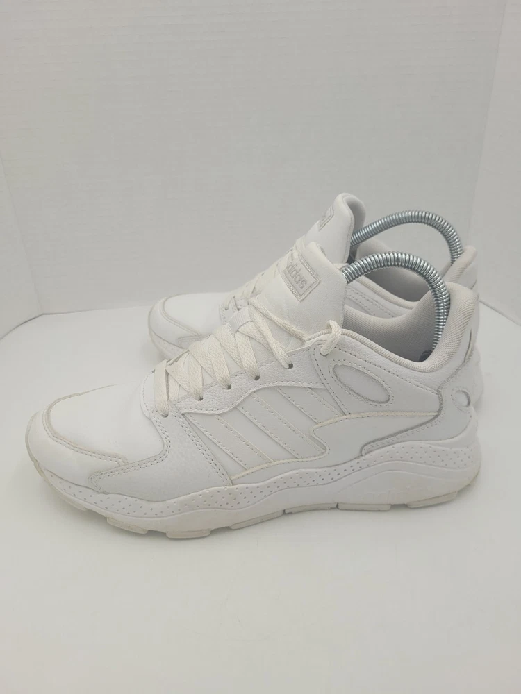 Step up your game with these Adidas Neo Chaos sneakers. Featuring a sleek white leather upper and a low top style, these shoes are perfect for any occasion. The shoe's rubber outsole provides durability and traction, while the foam insole ensures comfort and arch support. With features such as adjustable lace-up closure, breathability, and lightweight design, these sneakers are perfect for gym training, cross-training, or just a casual day out. The shoes are available in US size 8 and UK size 6.5, and come in a solid white color with a cap toe design. Get ready to go out in style with these Adidas Neo Chaos sneakers. P