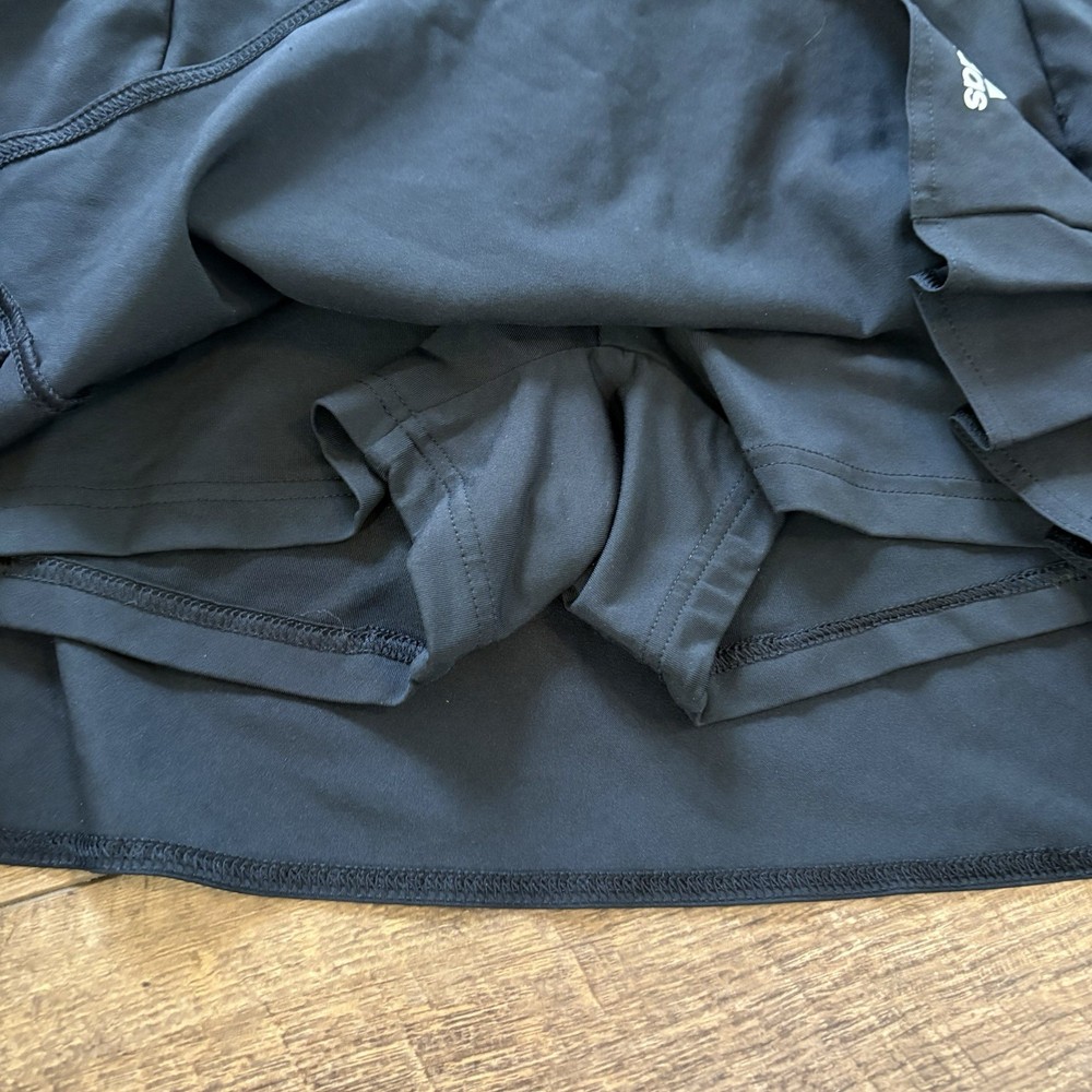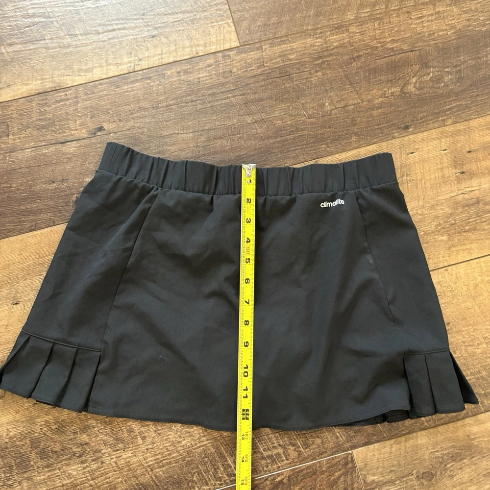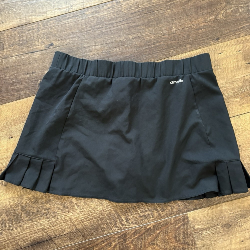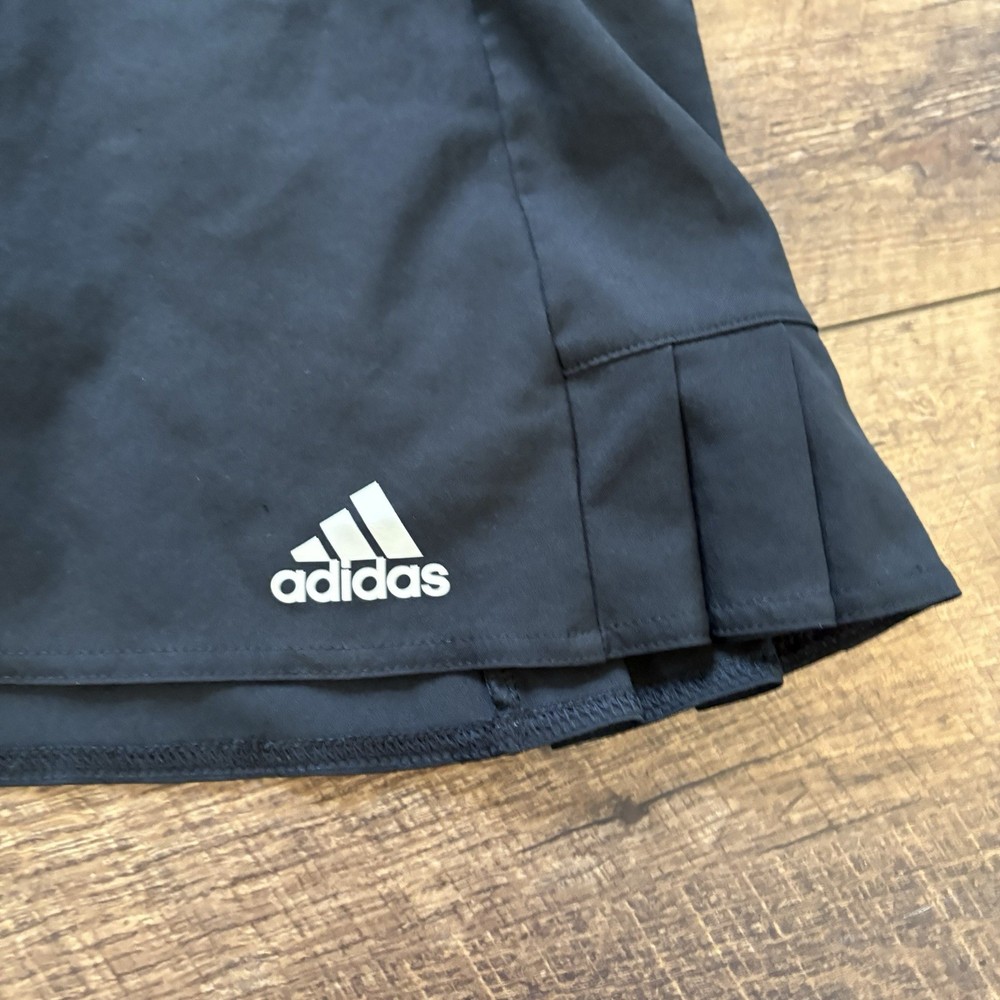 The Adidas Climalite Women’s Black Pleated Tennis Skort in size M is a stylish and practical option for active women. Made from a polyester blend fabric, this skort features a solid black color with a short skirt length, making it perfect for tennis and other athletic activities. The pull-on closure, elastic waist, and stretch material ensure comfort and ease of movement during physical activities. Perfect for the summer and spring seasons, this skort is machine washable for easy care and maintenance. Show off your athletic style with the iconic Adidas logo and design.
