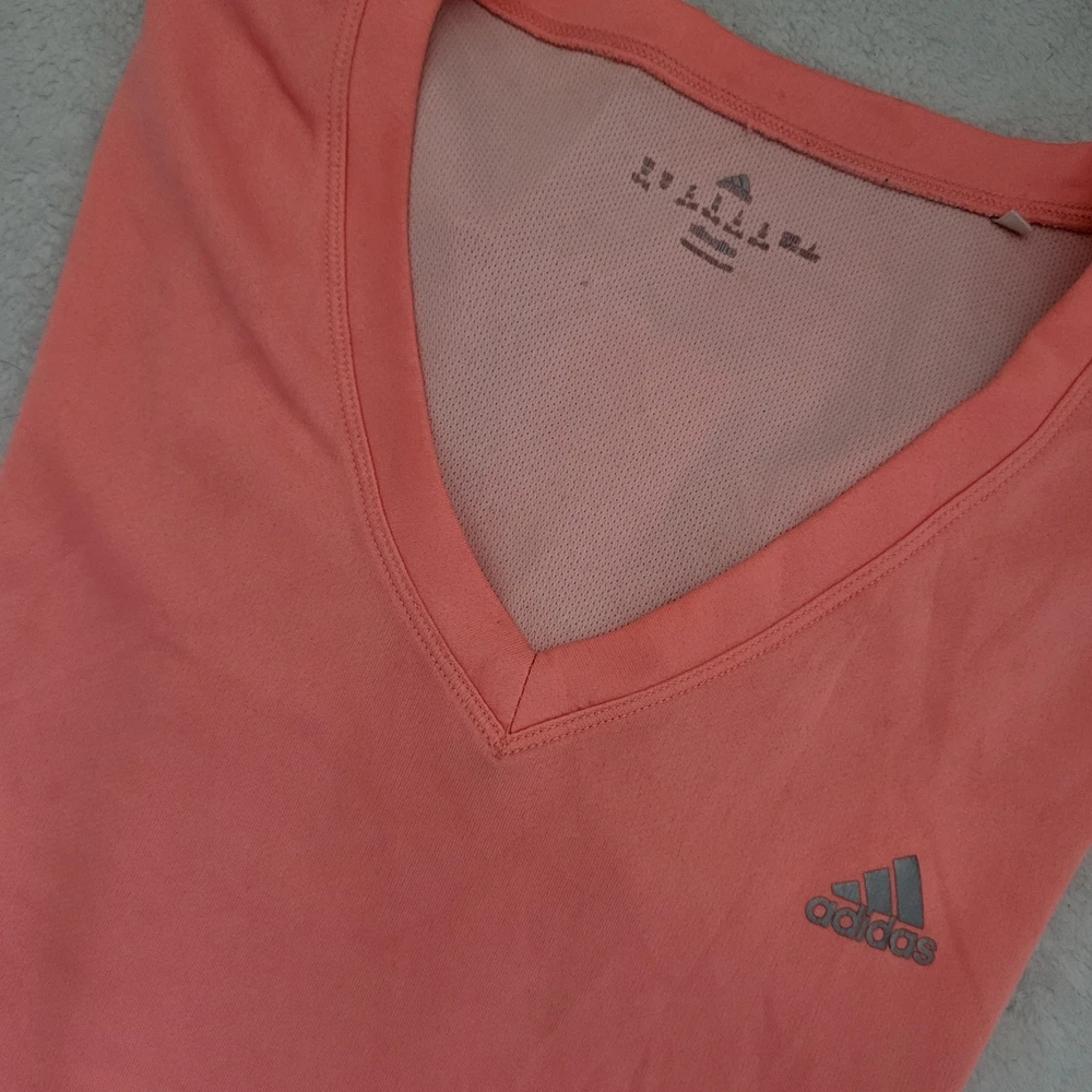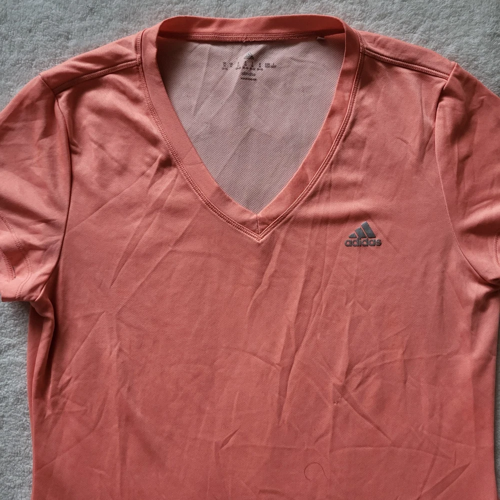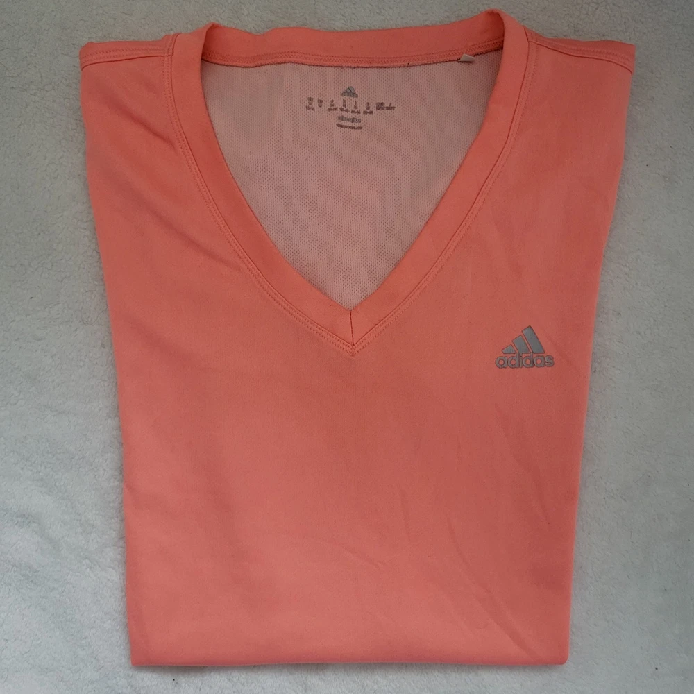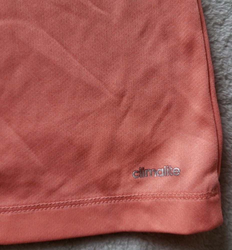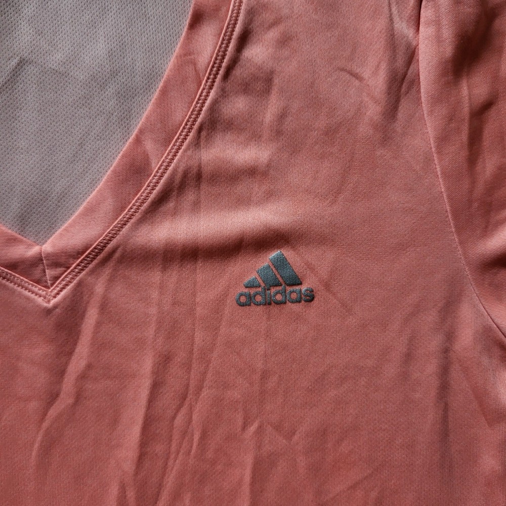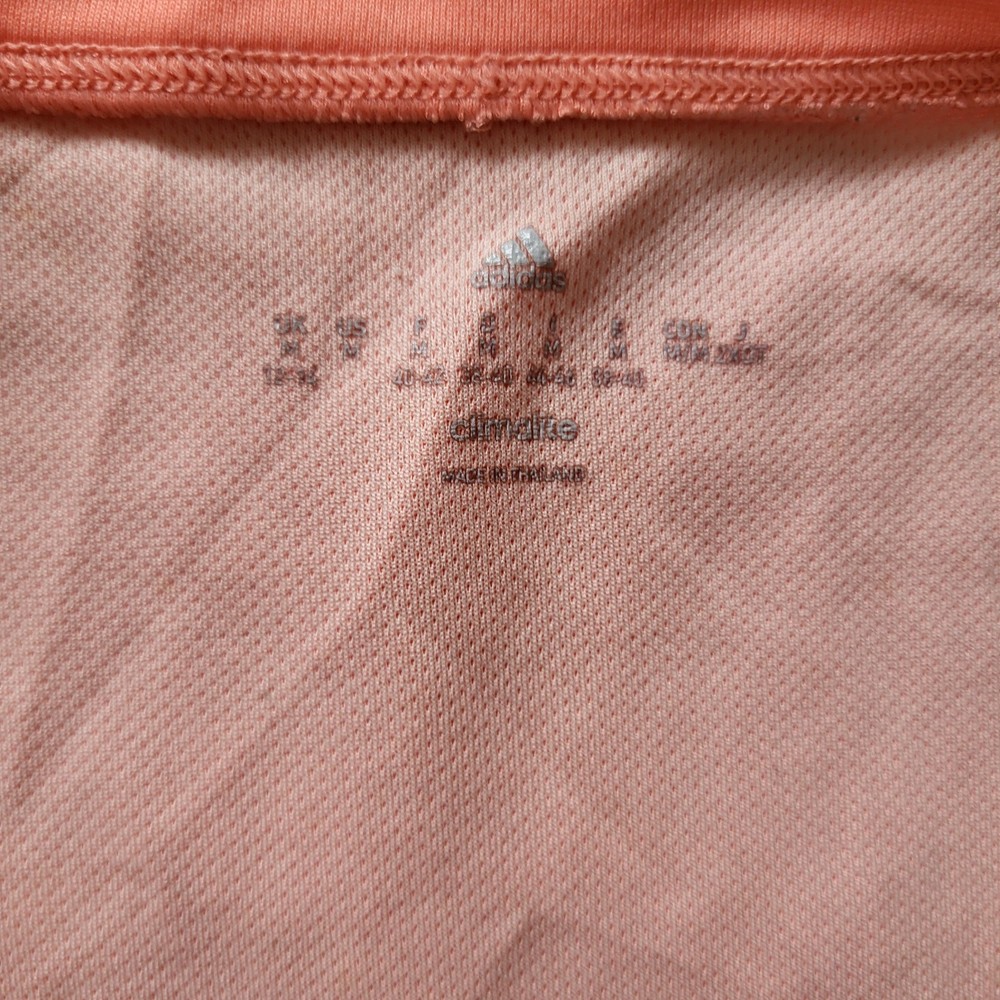 The Adidas Climalite Women's Peach Color Short Sleeve Tee in size M is a stylish and comfortable activewear top perfect for summer and spring. Made from 100% polyester with a light fabric wash, this V-neck tee features a solid orange color that adds a pop of brightness to your workout wardrobe. The pullover closure and lightweight, breathable material make it easy to wear during various activities such as gym training, cross-training, and running. Machine washable for easy care, this tee is a versatile and practical addition to your active lifestyle.