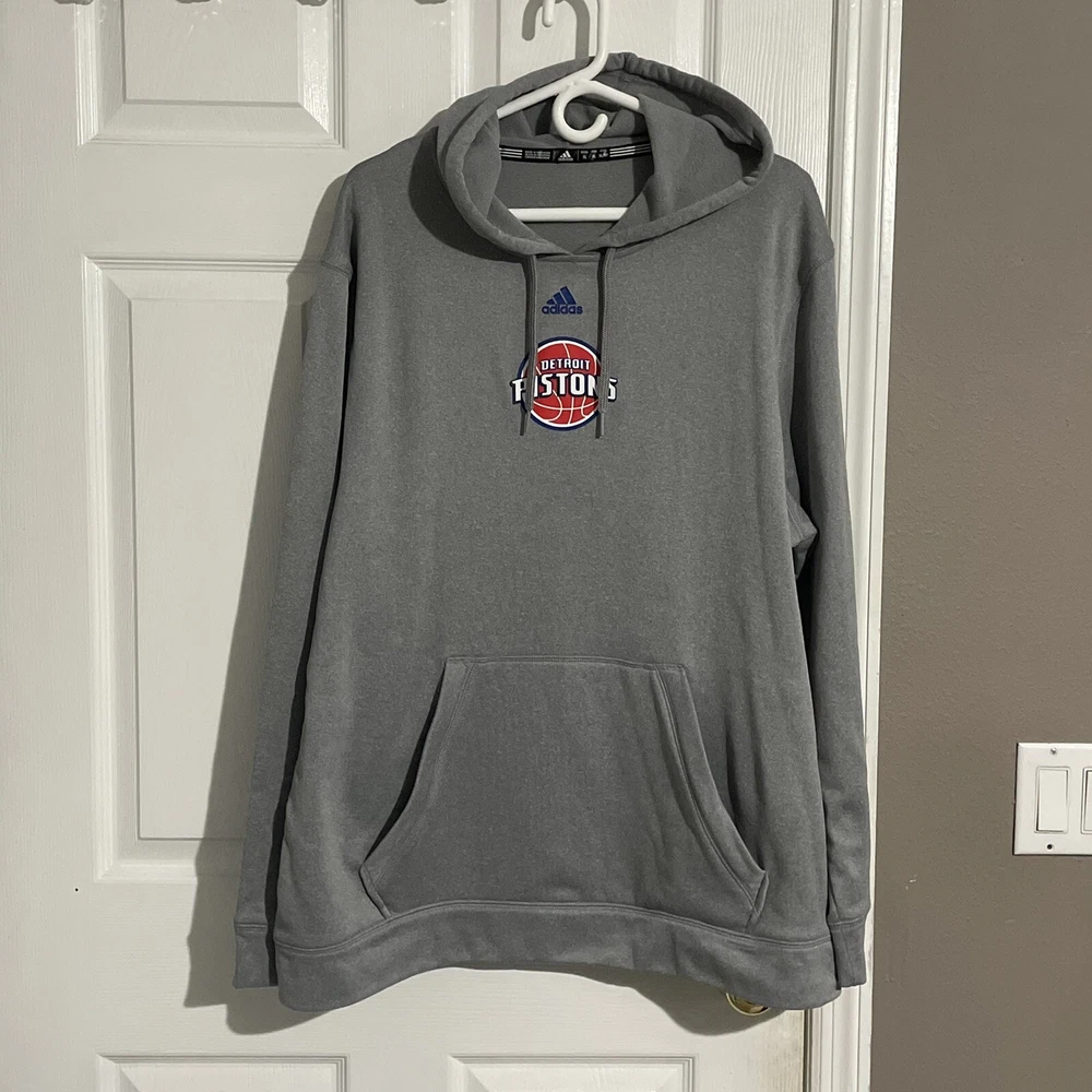 Adidas Climawarm Hoodie Mens XL DETROIT PISTONS Pullover Gray LongSleeve NBA Few very small dot stains (see pictures for details)