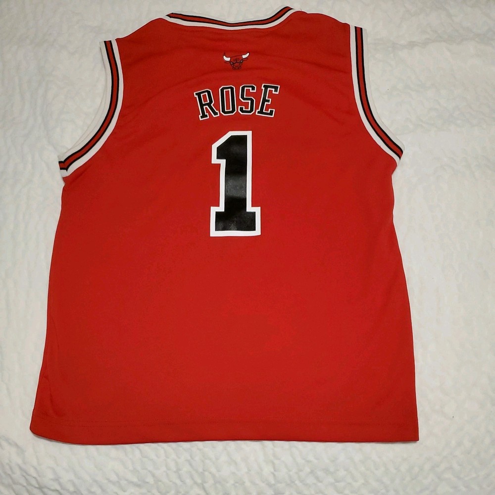 Capture the spirit of the game with this Adidas Derrick Rose #1 Chicago Bulls basketball jersey. A must-have for any young fan, the jersey is designed in a vibrant red, mirroring the energy and excitement of basketball's finest. Sized youth medium, it's a perfect fit for unisex children, allowing them to emulate their favorite NBA player with pride and comfort. Officially licensed by the NBA, this jersey upholds the highest standards of quality and authenticity. Whether it's for playing or displaying, this piece of sports memorabilia is an exceptional addition to any collection, honoring the legacy of Derrick Rose and the timeless appeal of the Chicago Bulls.