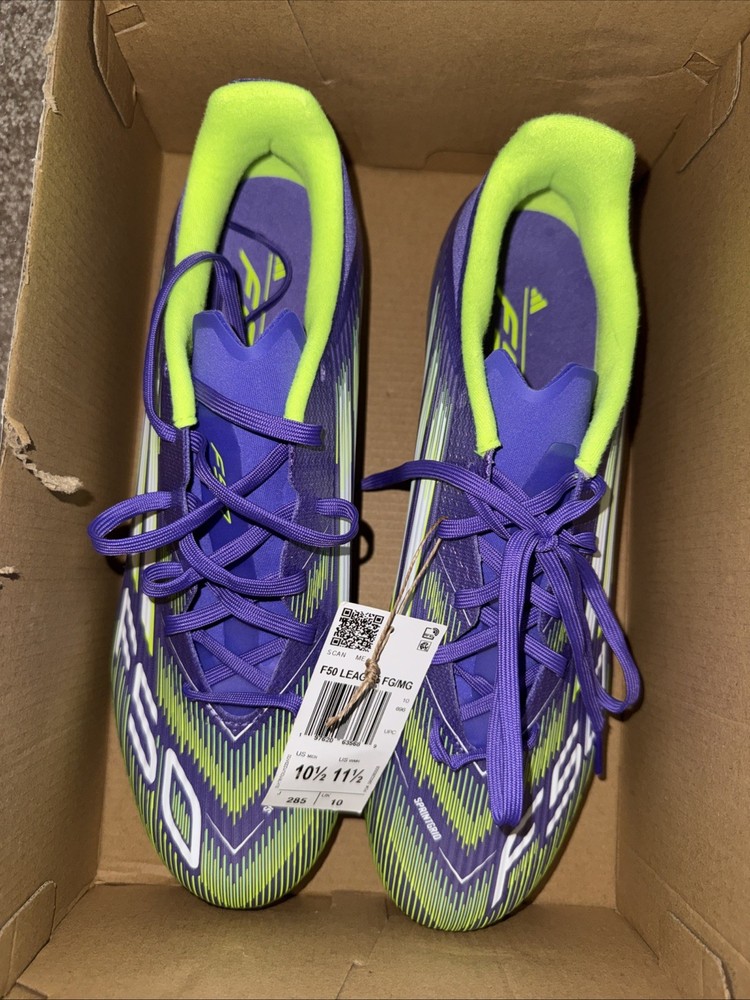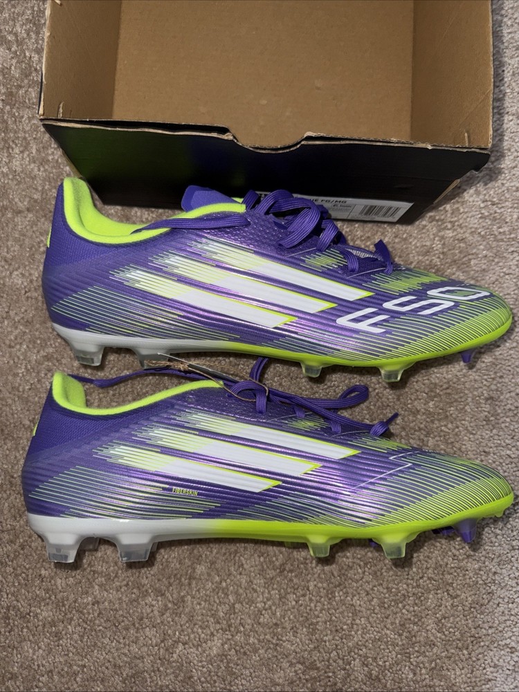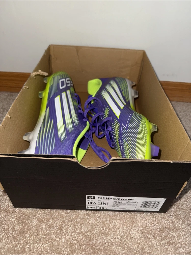 The Adidas F50 League FG/MG Purple Rush Soccer Shoes JI0003 is a high-performance pair of men's soccer shoes in size 10.5. These shoes, part of the Adidas F50 product line, feature a medium width and a vibrant purple color. Designed for use on both firm and medium ground surfaces, these shoes are perfect for players looking for a reliable and stylish option for their soccer games. With the trusted Adidas brand and quality construction, these shoes are sure to enhance your performance on the field.