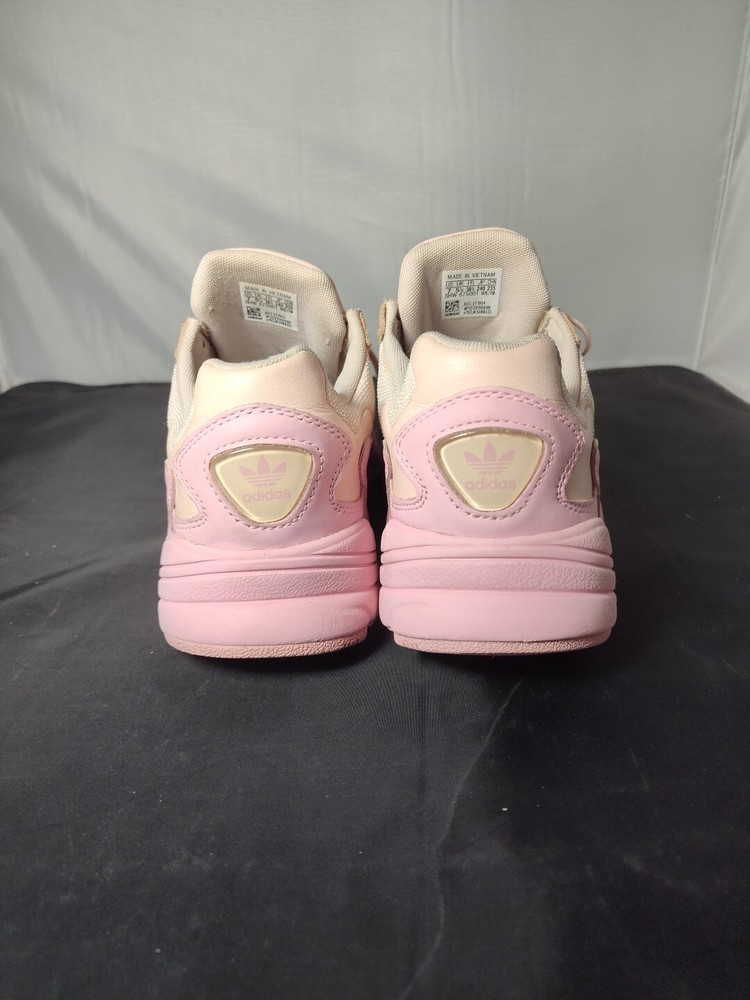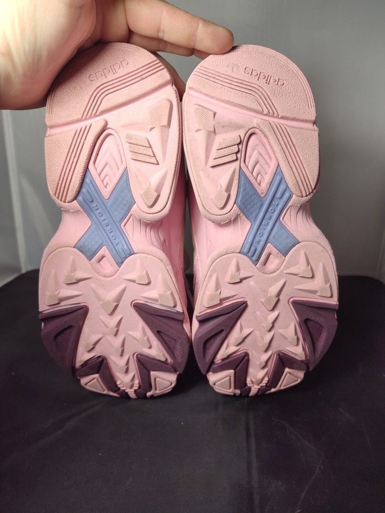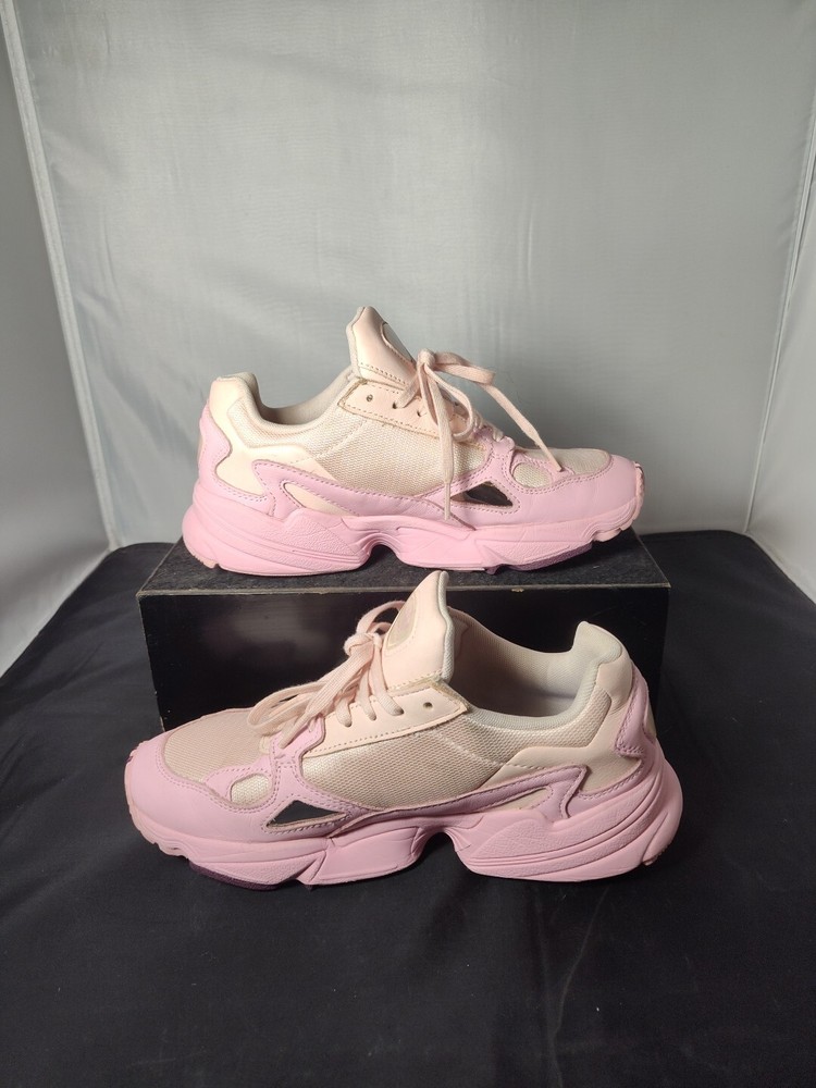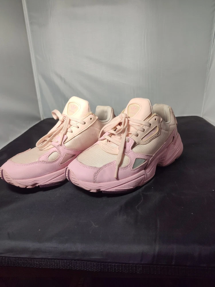 Very good used condition see photos! Elevate your shoe game with these stylish and comfortable Adidas Falcon sneakers in a beautiful icy pink color. These shoes are perfect for women who love to stay active whether it's gym training, running, jogging or even casual walks. The shoes are designed with a synthetic upper material and a rubber outsole to ensure maximum comfort and support. These sneakers also feature a lace-up closure for a secure fit and the Adidas logo as an accent. They are suitable for all seasons, including winter, summer, fall, and spring. These shoes are perfect for activewear, casual wear, and workwear. The Adidas Falcon sneakers are a must-have addition to your shoe collection.
