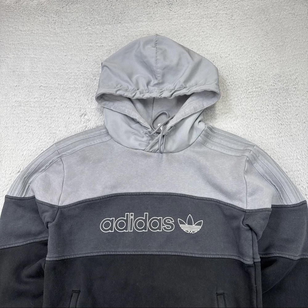 Adidas Hoodie Mens Large Gray Black Colorblock Trefoil Originals Pullover Logo