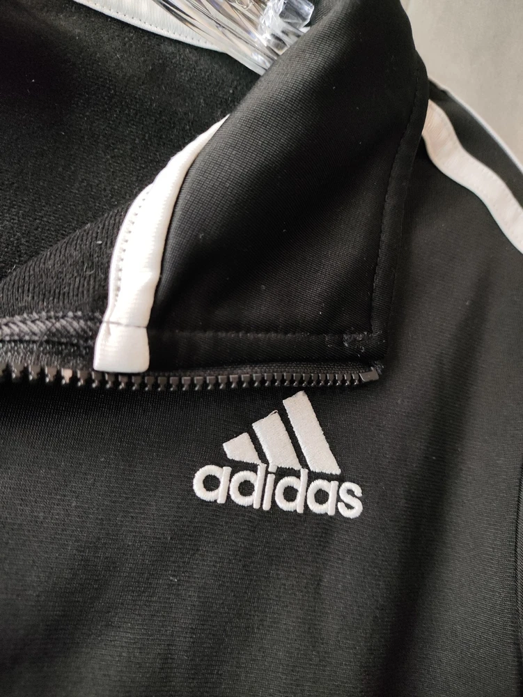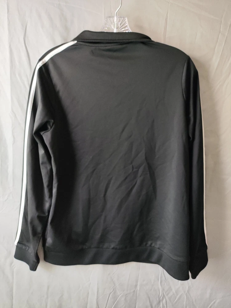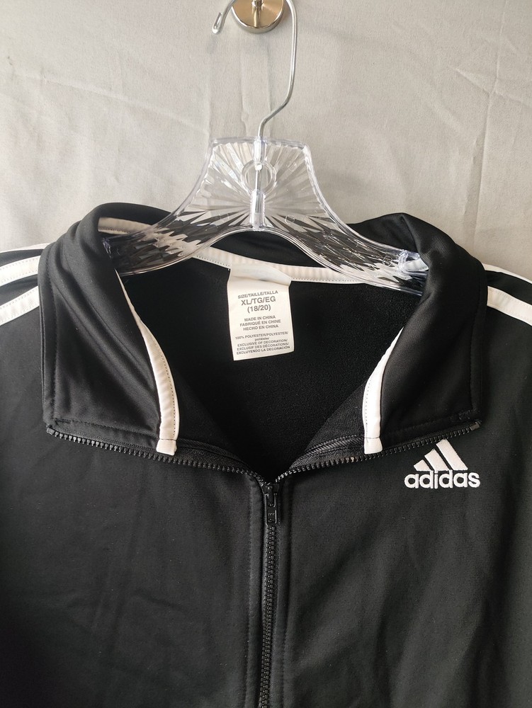 Adidas Jacket Mens XL Black White Track Full Zip Athletic 3 Stripes Logo Polyester Condition: Gently worn, no visible flaws. Zipper and trim are fully functional, with no stains or holes detected. Shell: 100% polyester Classic Adidas three-stripe design on both sleeves Embroidered Adidas logo on front left chest Full zip front closure Two front hand pockets Ribbed cuffs and hem for a secure fit Tag size: XL (18/20) - Mens Main color: Black with white stripes Style: Athletic track jacket Perfect for sports, athleisure, or everyday casual wear Made in China