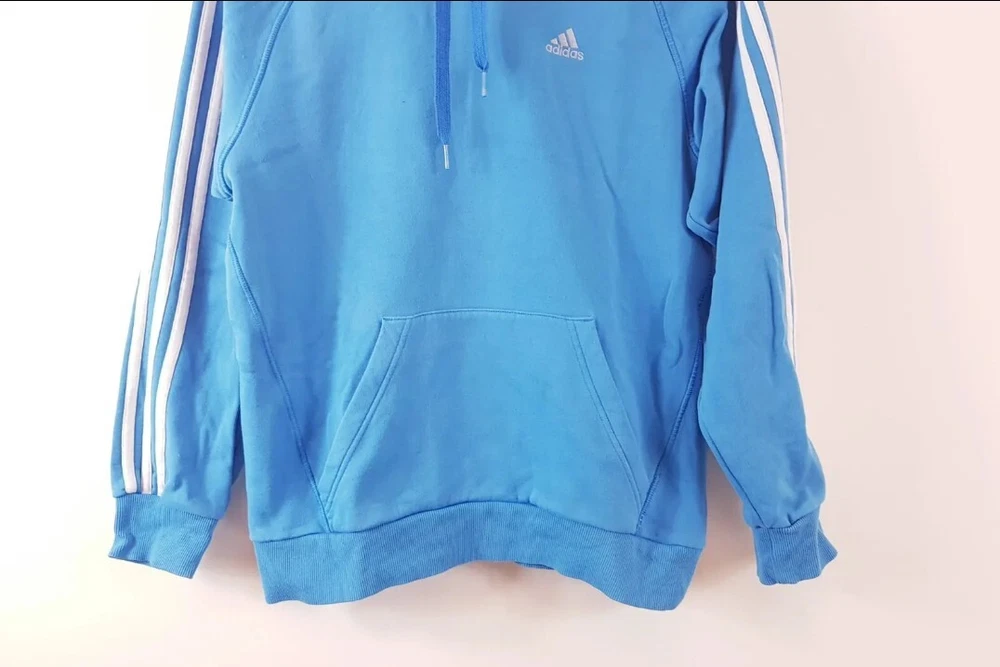 This Adidas men's hoodie is the perfect addition to any sports enthusiast's wardrobe. The lightweight polyester and cotton material make it comfortable to wear during any season, whether it's for gym training or outdoor activities like walking, running, and jogging. The drawstring closure and long sleeves help keep you warm during winter and autumn, and the embroidered logo accents and classic 90s sports theme add a stylish touch to your outfit. The blue hoodie comes in a size small and has a regular fit. It's machine washable, so you can easily clean it after use. It's perfect for those who love Adidas and want to add a new classic piece to their collection. In Good Used Condition Measurements In inch : Please see photos above for all measurements I will ship this item out via Evri 2-3 Day Mail with a tracking number for confirmation I ship items out EVERY DAY so EXPECT a QUICK delivery! Please feel free to ask any questions you may have I answer most questions instantly! PLEASE NOTE THAT ALL OUR ITEMS ARE %100 AUTHENTIC Please Note that all our items are from smoke and pet free Environment. #06/09/23# (B70) PLEASE VISIT MY STORE AND CHECK MY OTHER ITEMS THANK YOU