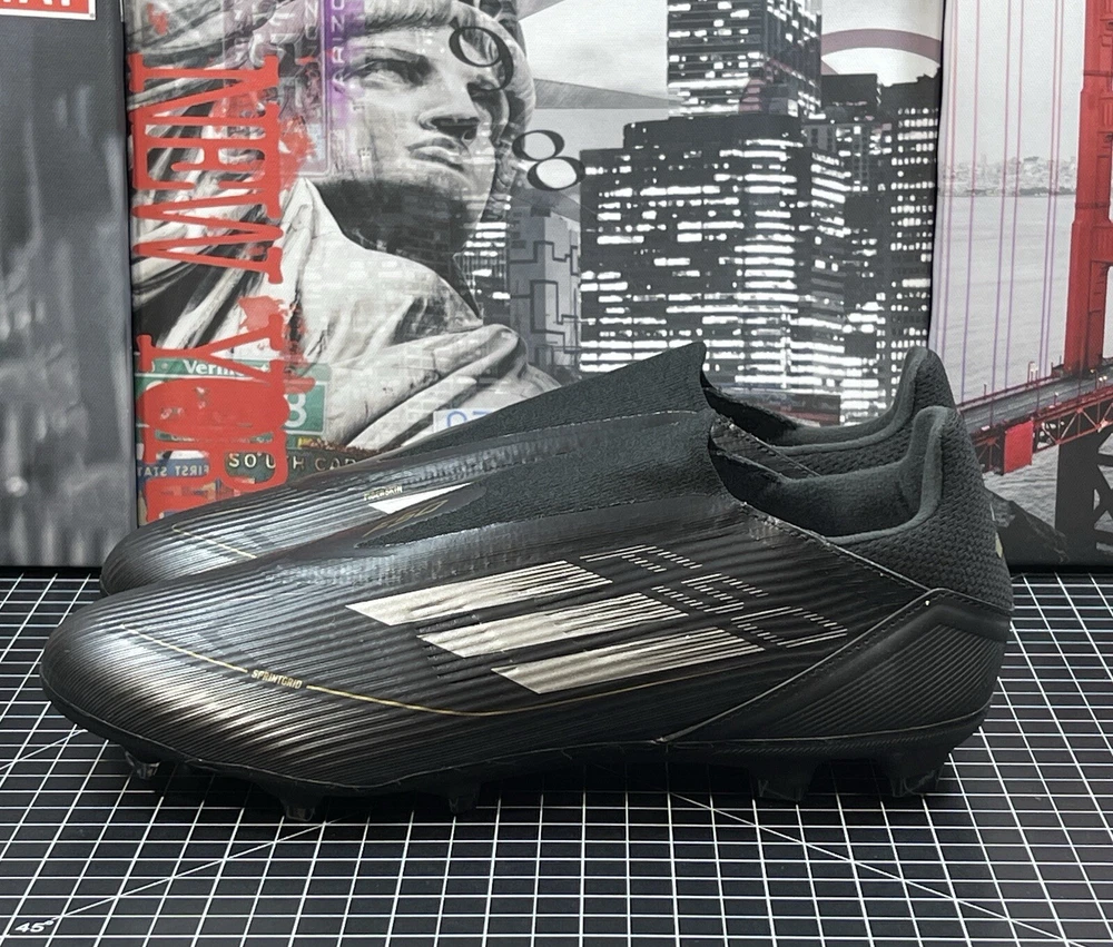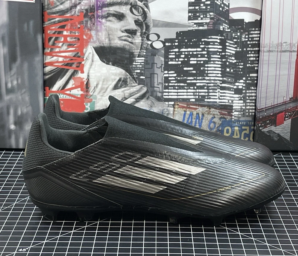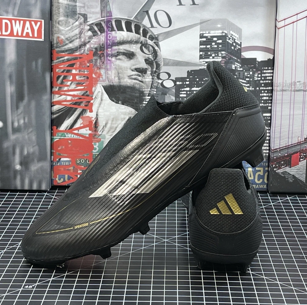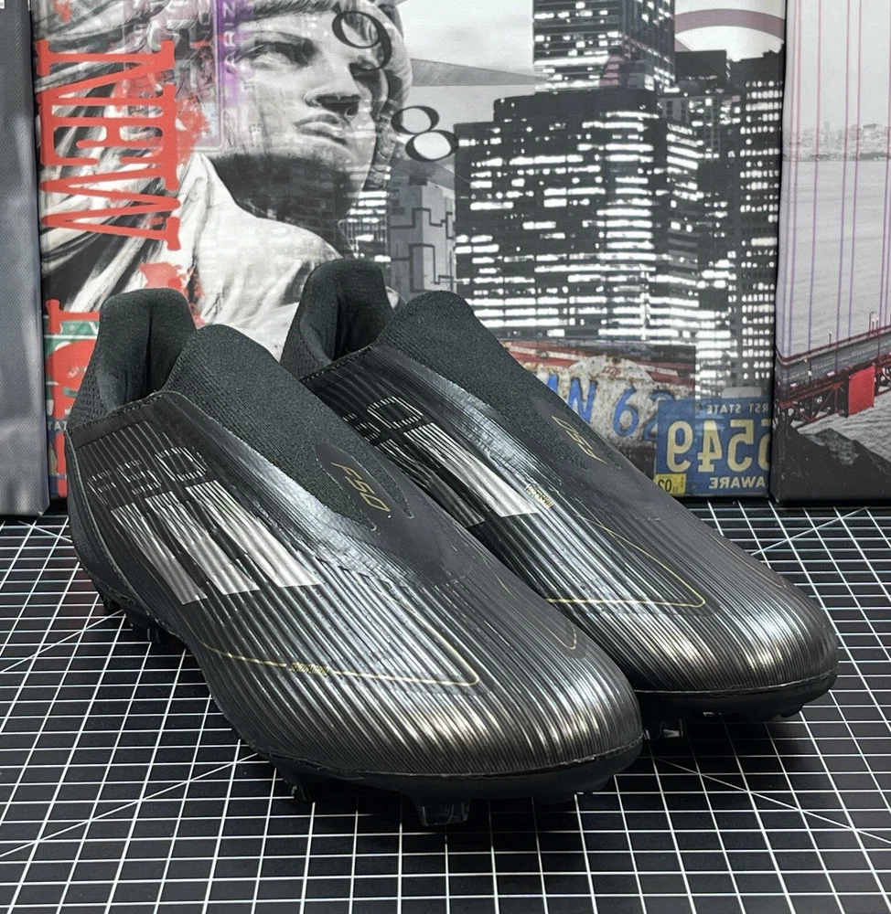 Adidas MNS Sz 10.5 US F50 League Laceless Firm/Multi-Ground Soccer cleats NEW • NEW WITH BOX • MENS SIZE 10.5 US / 10 UK • CORE BLACK / IRON METALLIC / GOLD METALLIC Elevate your game with these Adidas F50 League Laceless Firm/Multi-Ground Soccer Cleats. Designed for the ultimate performance, these cleats are ideal for football enthusiasts. The black, iron metallic, and gold metallic color combination adds a touch of style to your outfit. Crafted with the finest quality materials, these cleats are built to last. The upper material is designed to provide maximum support and comfort, while the firm and multi-ground soleplate ensures maximum traction on any field. Perfect for men who love athletic shoes, these Adidas F50 cleats are a must-have for any soccer player.