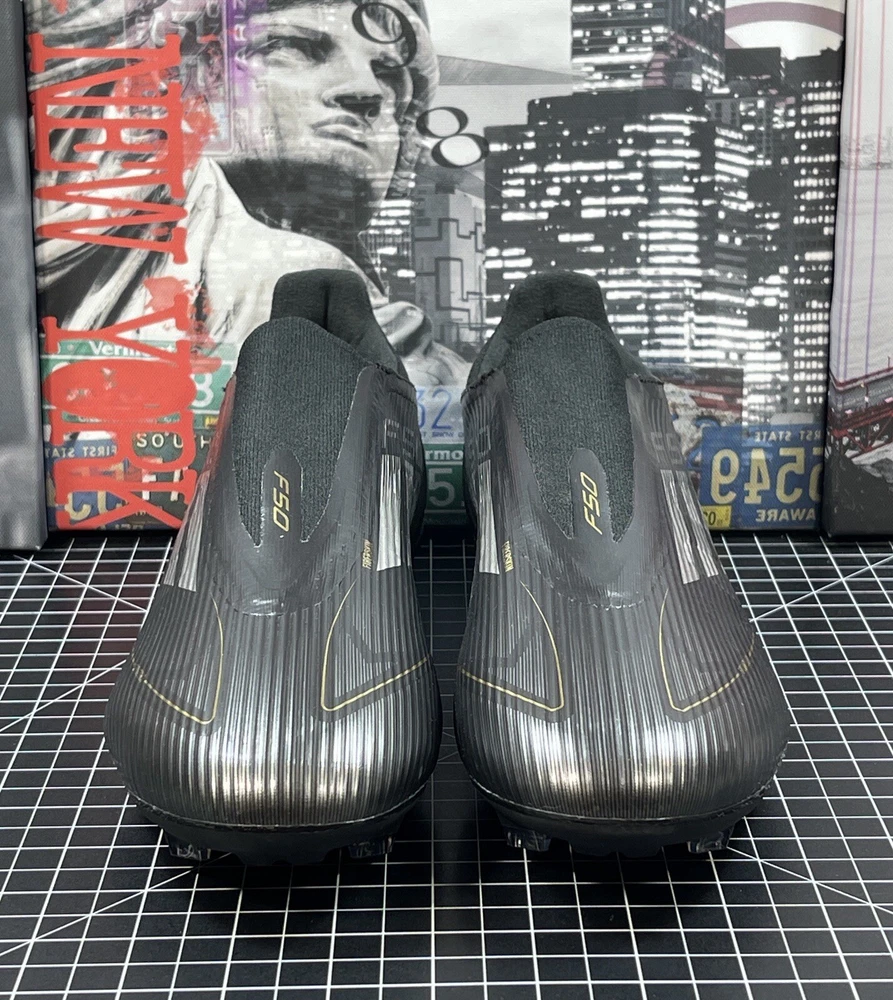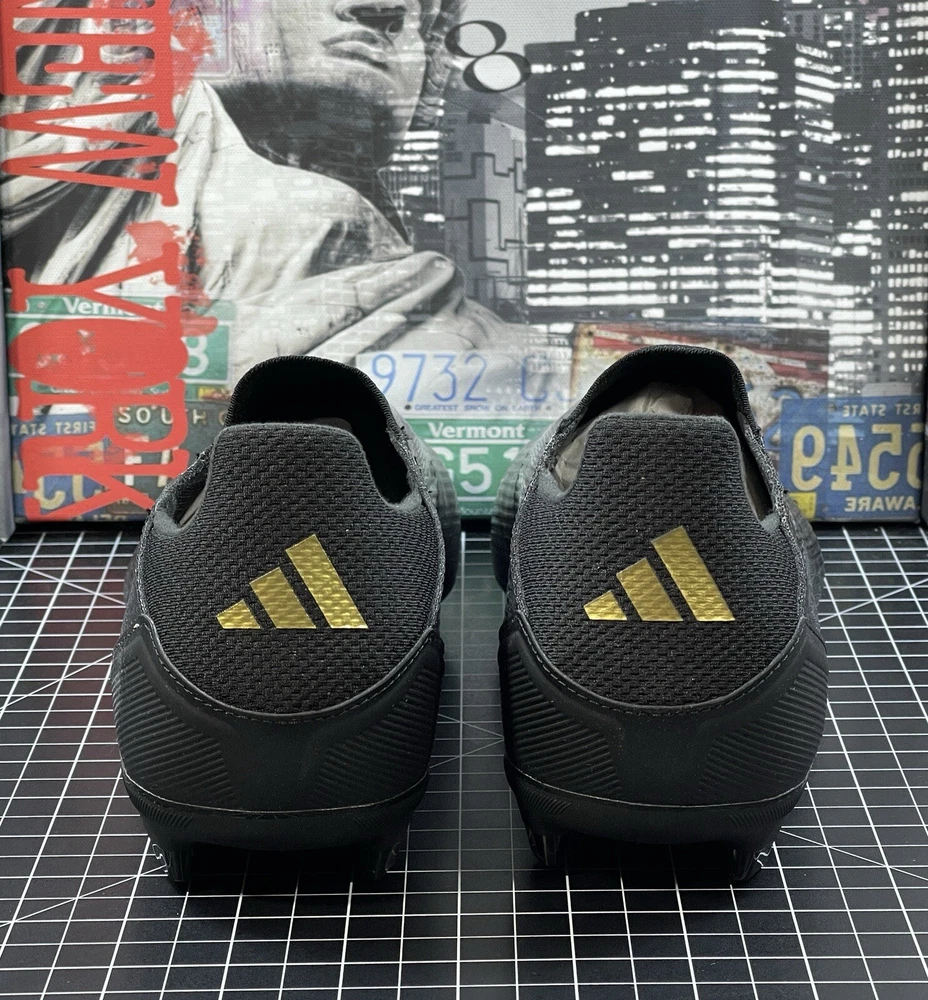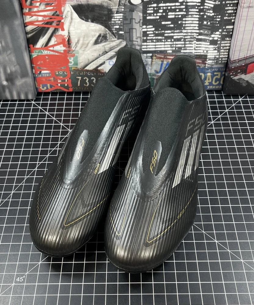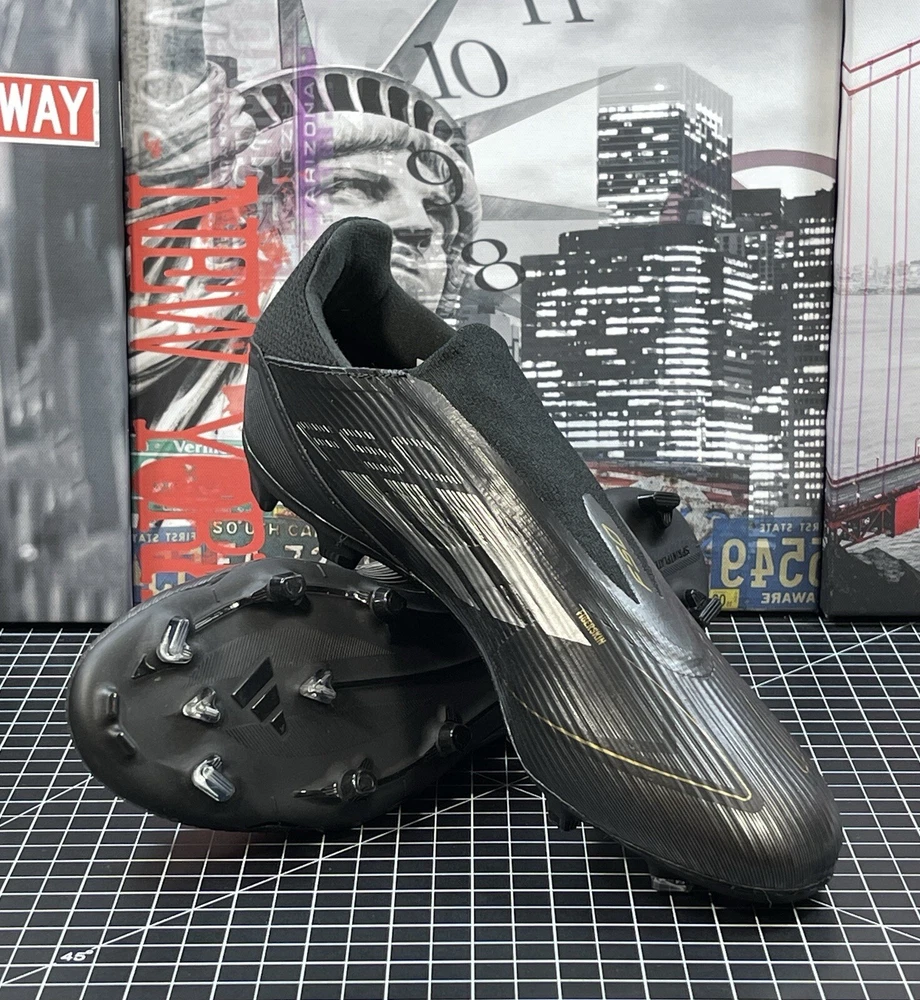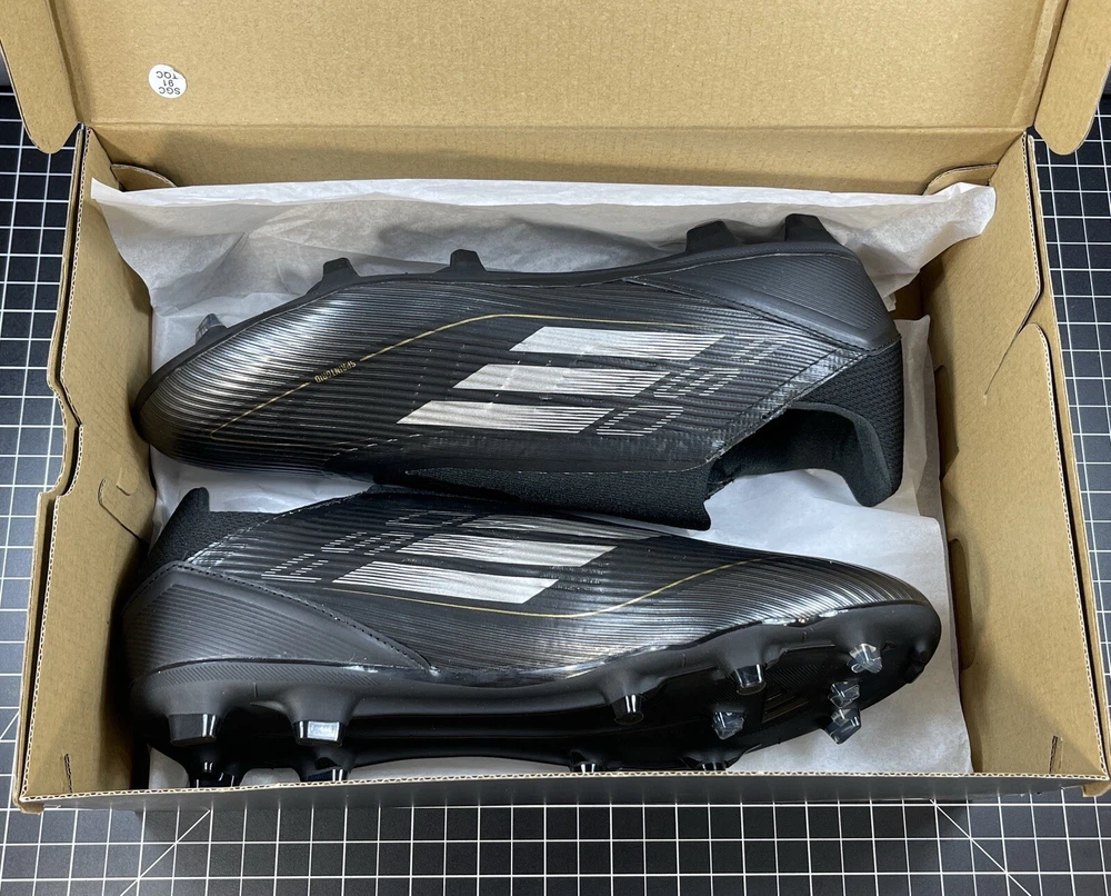 Adidas MNS Sz 10.5 US F50 League Laceless Firm/Multi-Ground Soccer cleats NEW • NEW WITH BOX • MENS SIZE 10.5 US / 10 UK • CORE BLACK / IRON METALLIC / GOLD METALLIC Elevate your game with these Adidas F50 League Laceless Firm/Multi-Ground Soccer Cleats. Designed for the ultimate performance, these cleats are ideal for football enthusiasts. The black, iron metallic, and gold metallic color combination adds a touch of style to your outfit. Crafted with the finest quality materials, these cleats are built to last. The upper material is designed to provide maximum support and comfort, while the firm and multi-ground soleplate ensures maximum traction on any field. Perfect for men who love athletic shoes, these Adidas F50 cleats are a must-have for any soccer player.