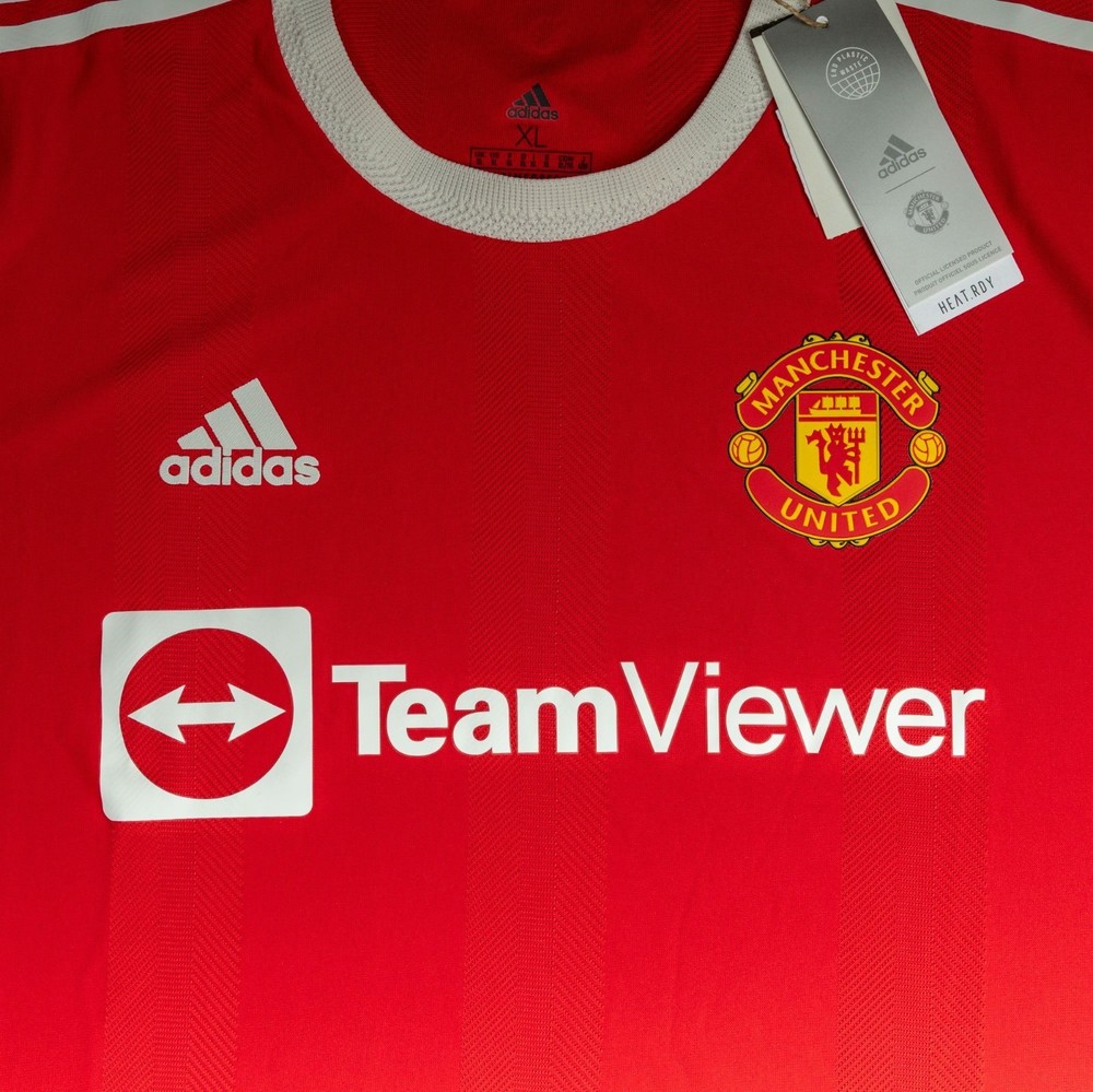 This authentic 2021/22 Manchester United Home Jersey by Adidas features the premium HEAT.RDY match-grade fabric engineered to keep players cool on the pitch. Designed in the classic MUFC red with white ribbed collar and sleeve cuffs, it includes the official Adidas logo, Manchester United crest, sponsor logos, and the Authentic Licensed Product badge. Made with Primegreen recycled materials, this top-tier version offers lightweight breathability, ventilation zones, and a tailored athletic fit. • Brand: Adidas • Condition: NWOT (New Without Tags Attached, Tags Included) • Team: Manchester United • Season: 2021/22 • Size: XL • Materials: HEAT.RDY Engineered Fabric, Primegreen Recycled Polyester • Retail Price: $130 • Type: Authentic Match Jersey • Features: Heat-applied crest, ventilation paneling, official licensed hologram tag, lightweight performance construction A premium authentic jersey perfect for collectors, fans, or training wear.