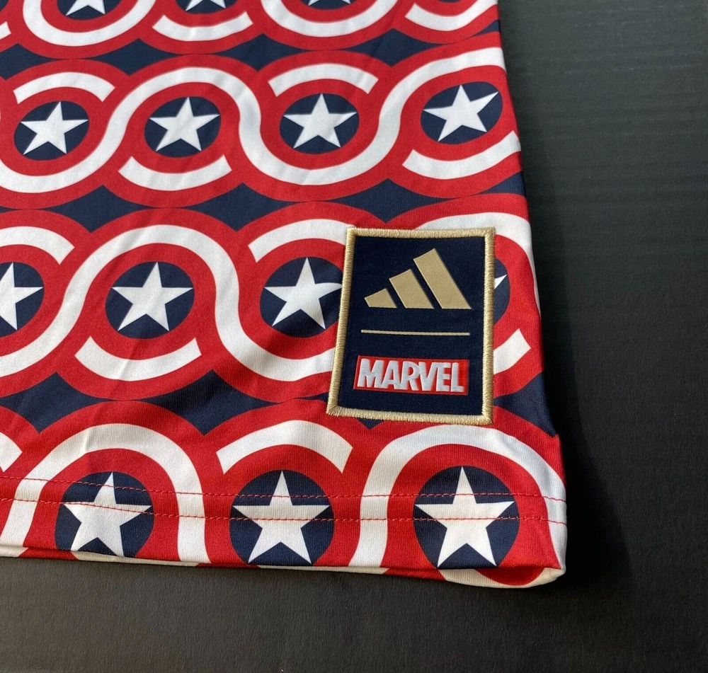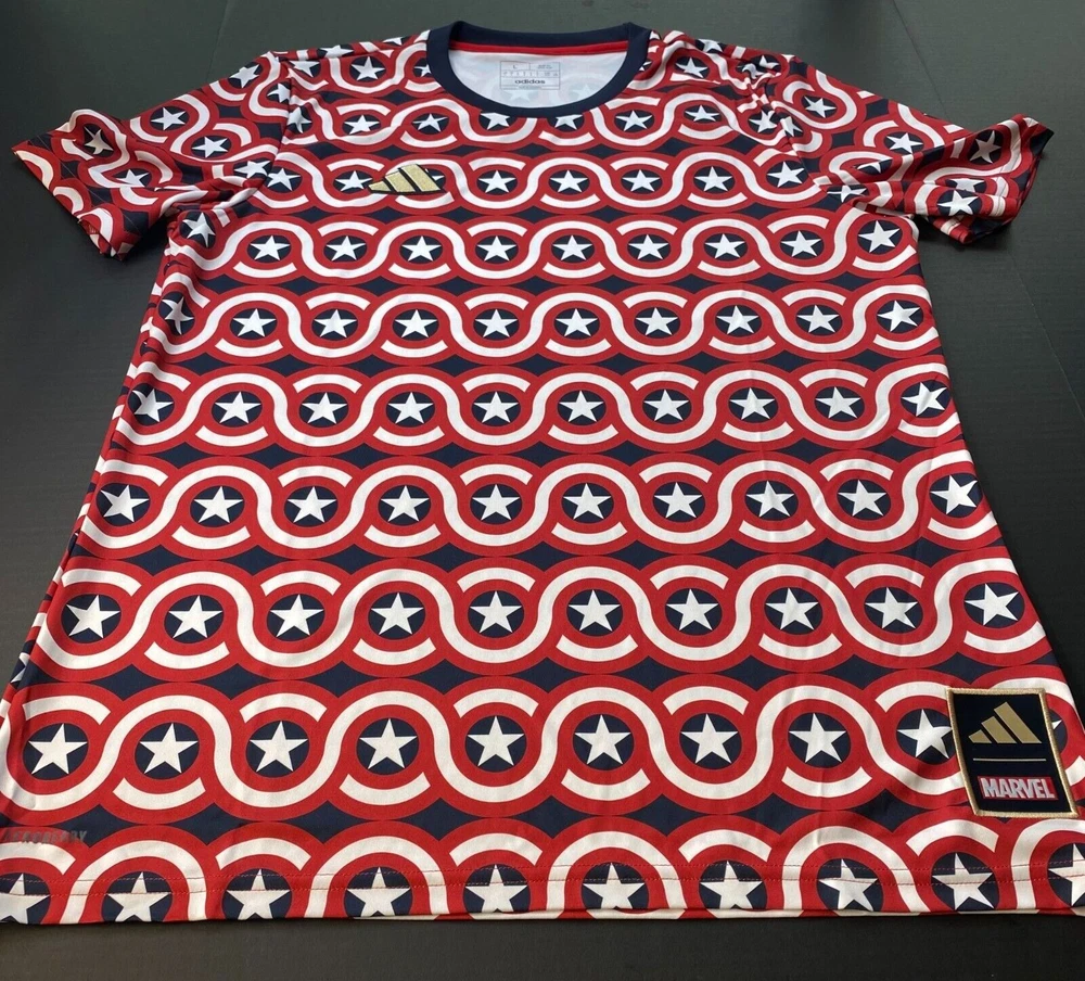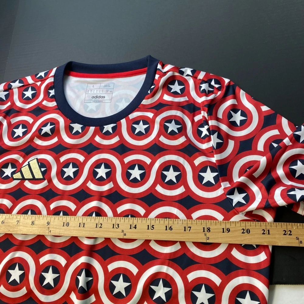 Adidas Marvel Captain America Shirt Size Large Slim Fit Red White & Blue mens new comes from a smoke and pet free place, you can contact us if you have questions. Please note that some photos may not show accurate shades. Photos are of the actual item you will receive. See photos for details. NEW. Please see photos for measurements