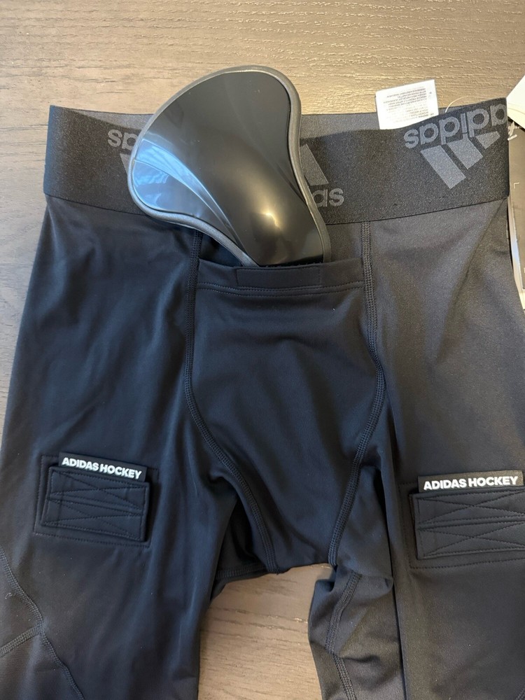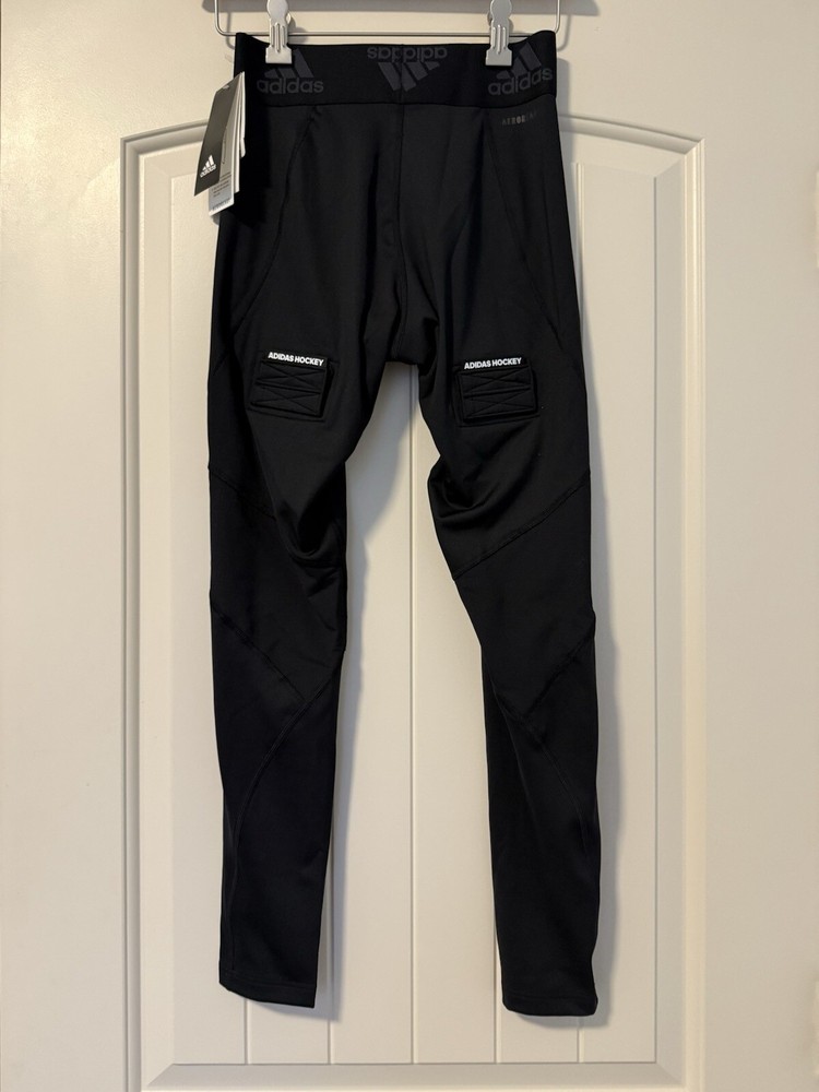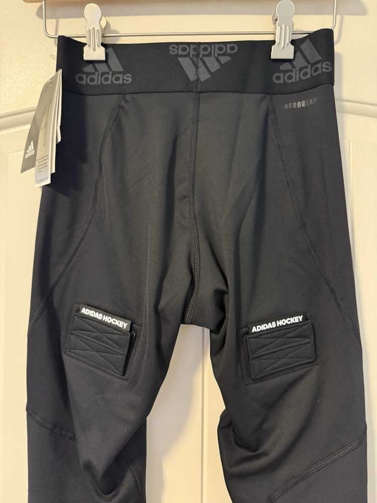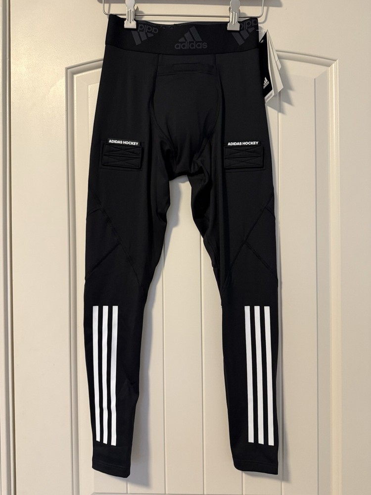 Fit: Regular Fabric Type: Knit Material: Polyester, Spandex Waist Size: XS Theme: Sports Size Type: Regular Pattern: Solid Type: Pants Size: XS Closure: Pull On Vintage: No Color: Black Season: Winter, Fall, Spring UPC: 194829523465 Compression Area: Leg Features: Comfort, Compression, Elastic Waist, Lightweight, Quick Dry, Shaping, Stretch, Cup Occasion: Activewear Leg Style: Skinny Handmade: No Country/Region of Manufacture: China Character: Hockey Performance/Activity: Hockey Style: Compression Brand: adidas Department: Men Inseam: 27 in Garment Care: Machine Washable Product Line: Adidas Hockey Personalize: No gtin13: 194829523465