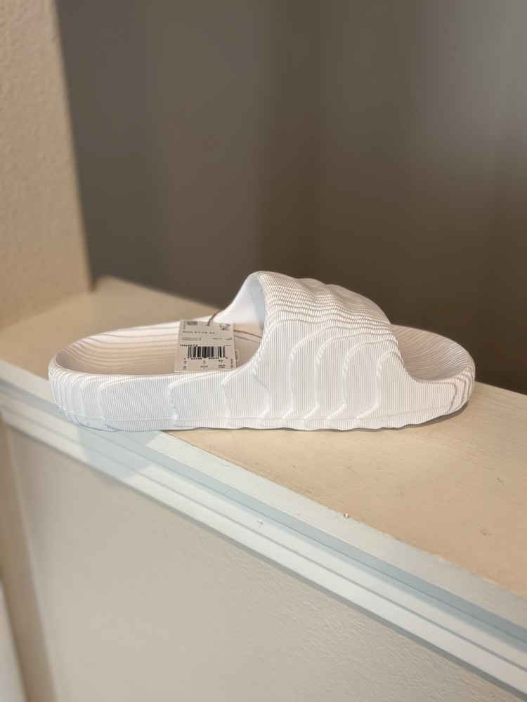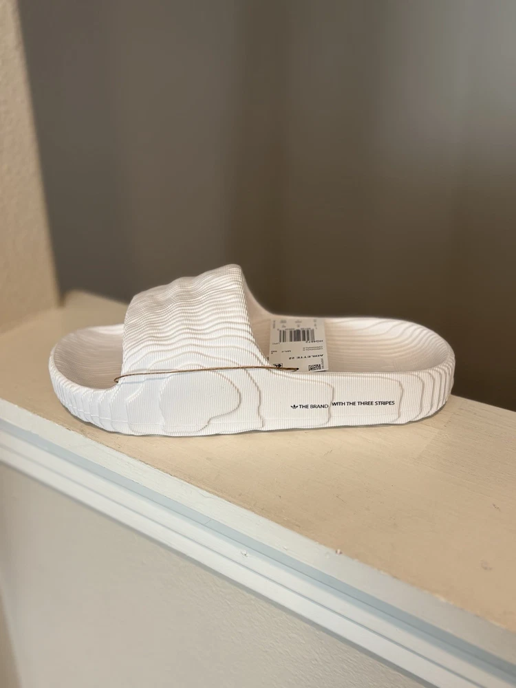 The Adidas Mens Adilette 22 Casual Slide in Crystal White is a stylish and comfortable sandal perfect for casual occasions. This slip-on style sandal features a synthetic lining and upper material, with the iconic adidas logo as accents. Ideal for the summer, fall, and spring seasons, these sandals are designed for men in a size 8. The classic white color and simple design make them easy to pair with a variety of outfits, making them a versatile and practical choice for everyday wear.