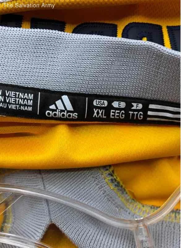 Adidas Yellow/ Solid Jersey - Size 2XL Brand: Adidas Type: Jersey Condition: Good - shows signs of wear Size: 2XL Color/Pattern: Yellow/ Solid All net proceeds will support The Salvation Army - Adult Rehabilitation Centers. Thank you for your support! Customer Service Hours: Monday - Friday 8:00am - 4:00pm EST Updated Shipping Policy Starting May 1, 2024 Flat-rate Shipping Service To be eligible for combined shipping, all invoiced items must fall under our flat-rate shipping policy. When orders are combined under the flat-rate shipping policy, larger items will be charged $14.99 for the first item and an additional $6 shipping fee per additional item. Smaller items will be charged $9.99 for the first item a $1 shipping fee will be charged per additional item. Requests for combined shipments must contain less than 20 items per shipment and cannot include items that are sold with calculated shipping. These items include large or bulky items, instruments, artwork, or framed items. Calculated Shipping Service Please note that items that are sold with calculated shipping cannot be combined with other items in the same shipment. This is because these items may include large or bulky items, instruments, artwork, or framed items, which require separate shipping arrangements. Thank you for your understanding.