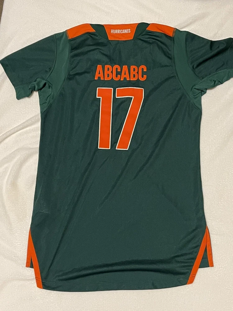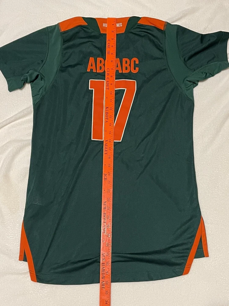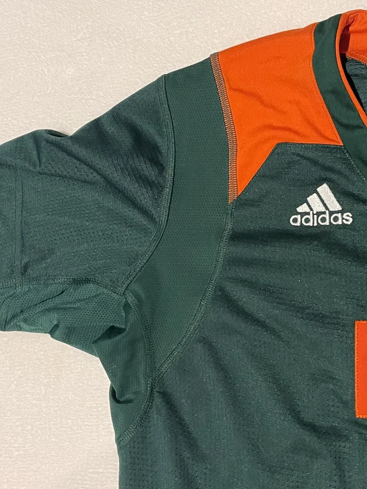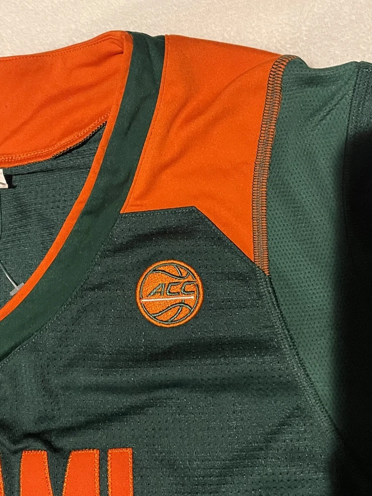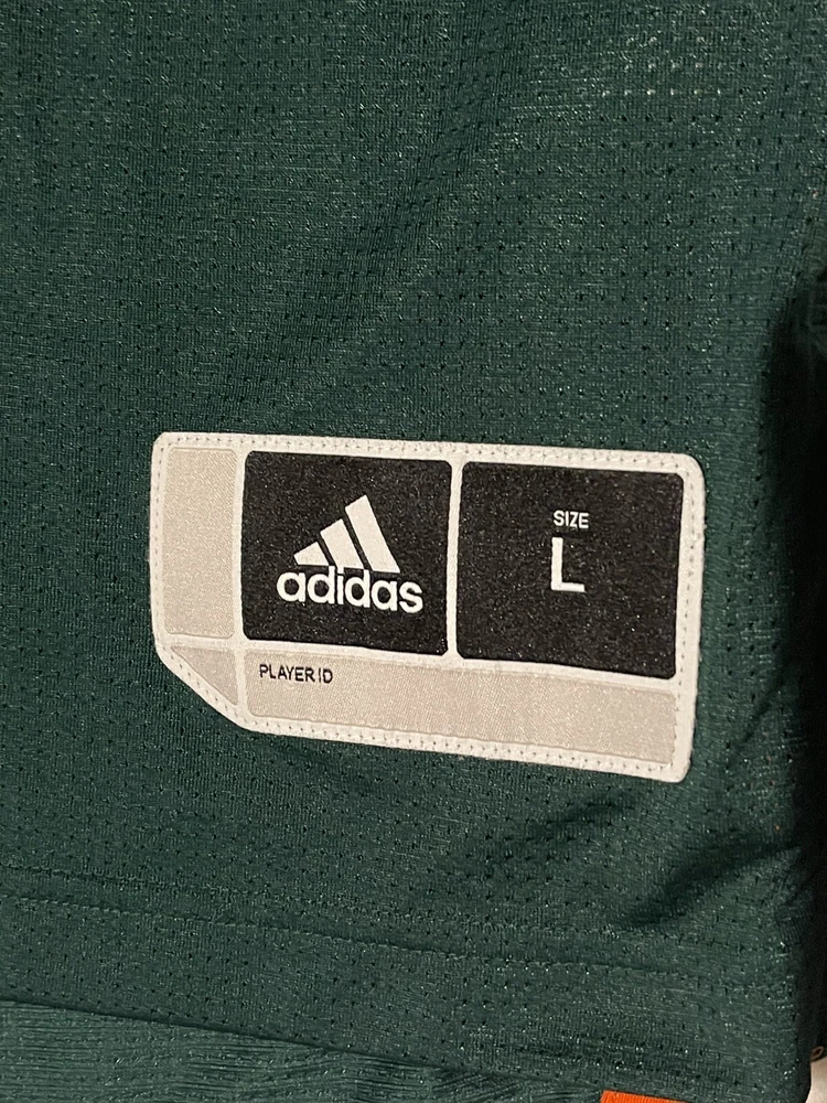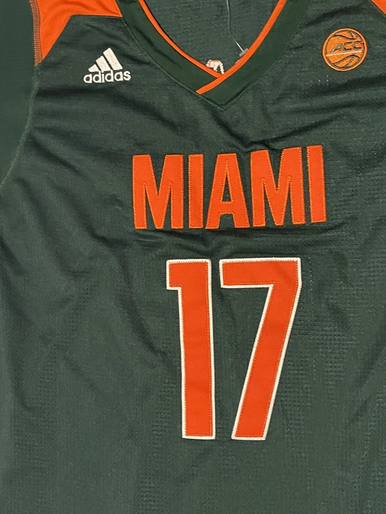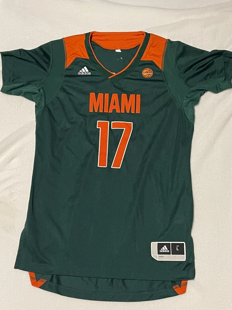 Show your support for the Miami Hurricanes with this rare Adidas NCAA basketball jersey. This unisex adult jersey features the number 17 and is perfect for regular season games. The green color and Adidas brand make this jersey a must-have for any college basketball fan. This officially licensed product is a great addition to any sports memorabilia collection. The size is large and the country/region of manufacture is unknown. Get your hands on this RARE sample promo jersey today!