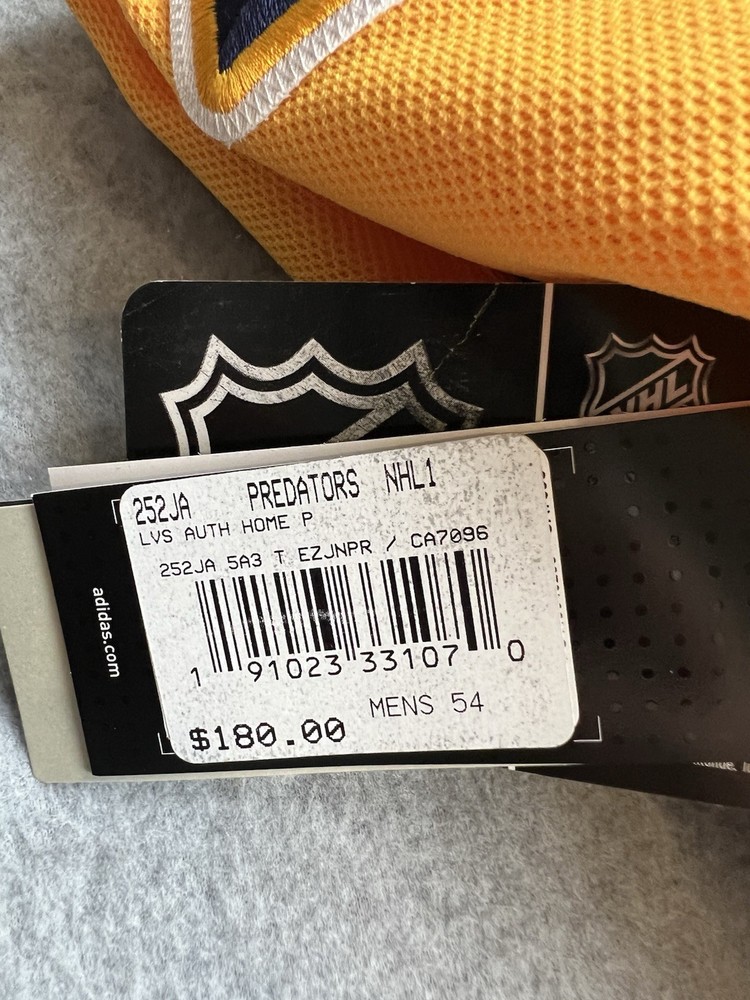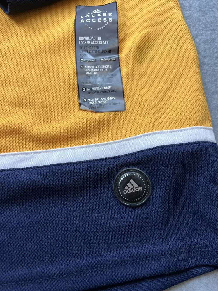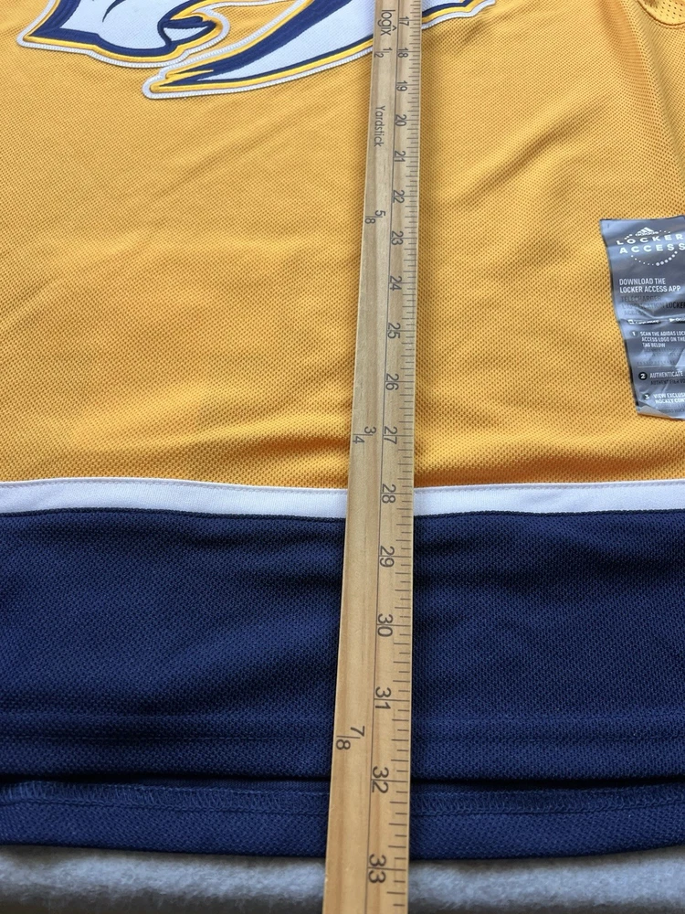 Sport:HockeyColor:Yellow/BlueProduct:JerseyTeam:Nashville PredatorsGender:MenBrand:adidasSize:54League:National Hockey League (NHL)UPC:191023331070gtin13:191023331070Officially Licensed:Yes