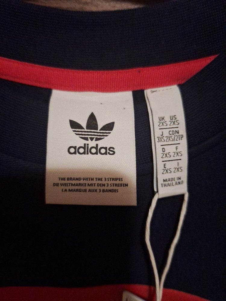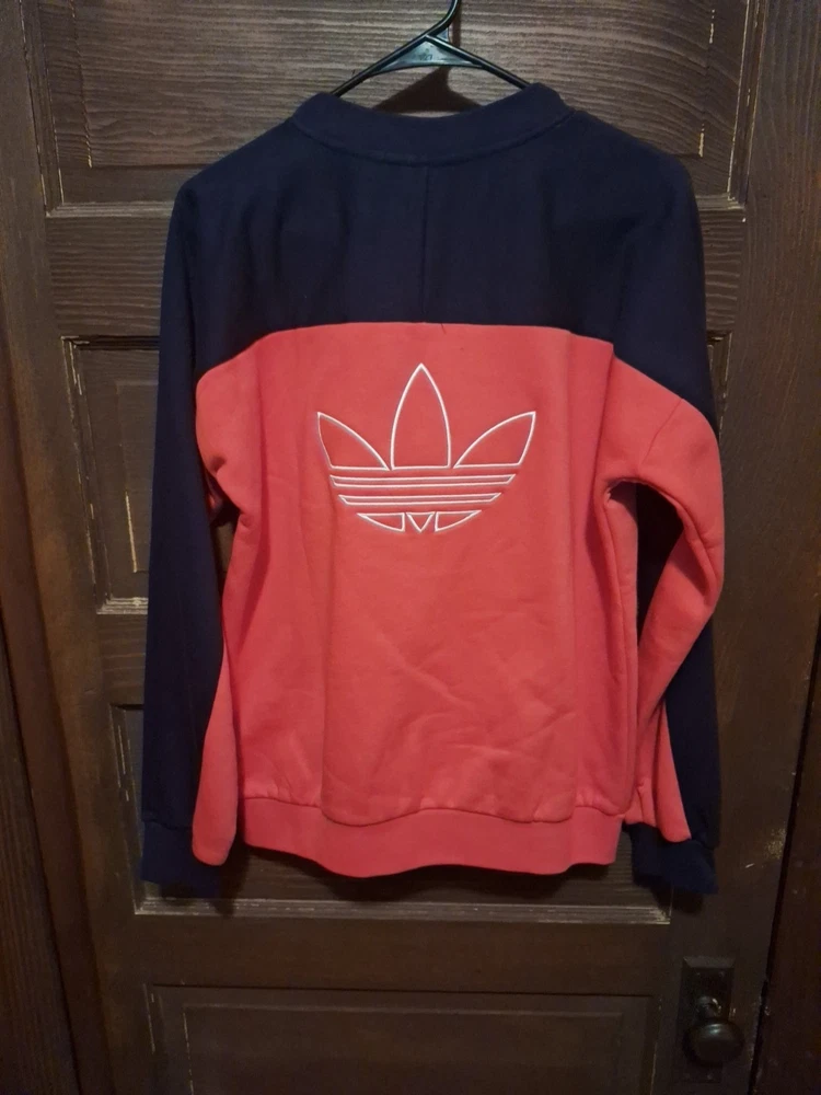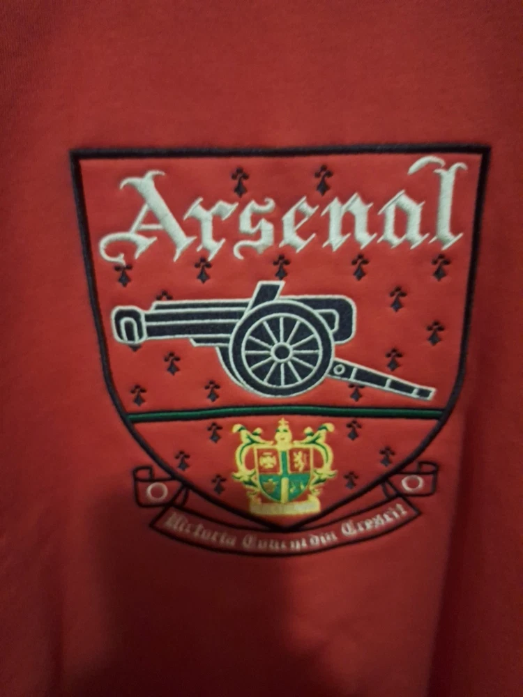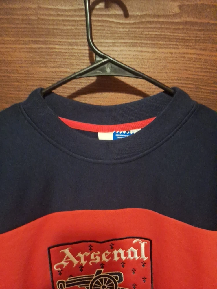 The Adidas Originals AFC Arsenal Football Club Vintage Sweatshirt in Navy Red is a stylish and comfortable activewear piece perfect for football fans. Made from cotton fleece, this long-sleeve sweatshirt features embroidered logos of both Arsenal Football Club and Adidas, adding a touch of exclusivity with its limited edition release. The red color and classic round neck design make it versatile for wear in all seasons, making it a must-have for any Arsenal fan looking to show their support in style. *New with tags