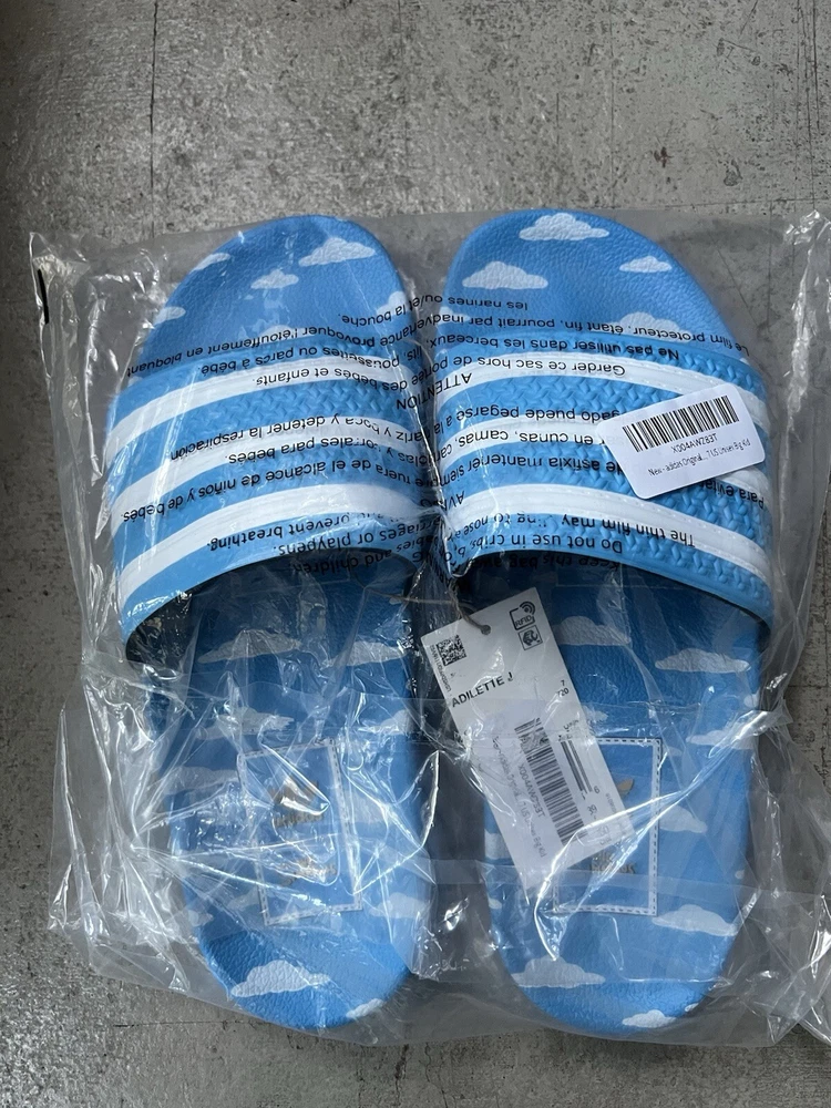 Adidas Originals Adilette Comfort Slides Slipper, Blue/white Size 7