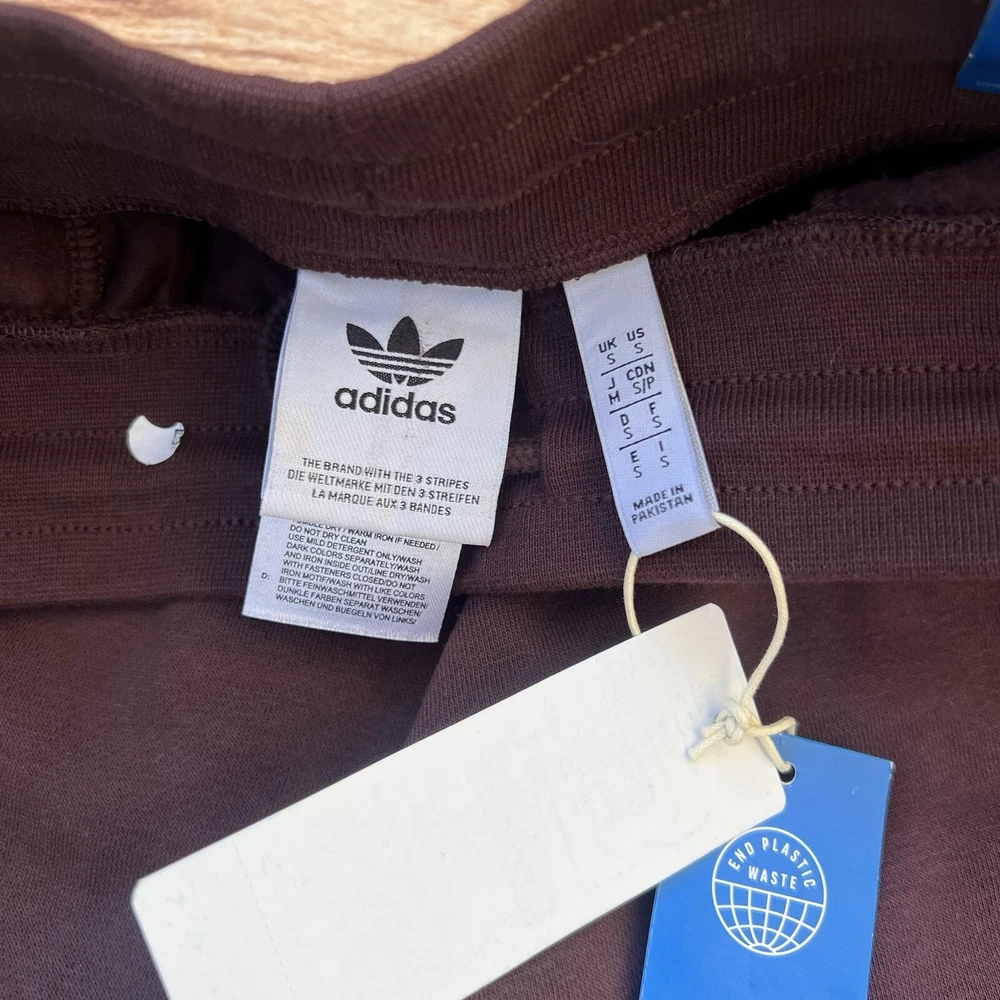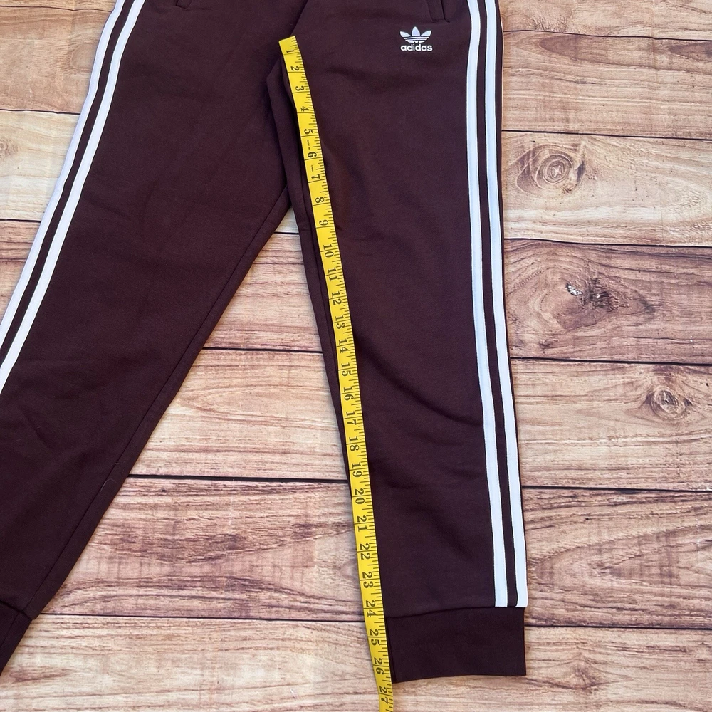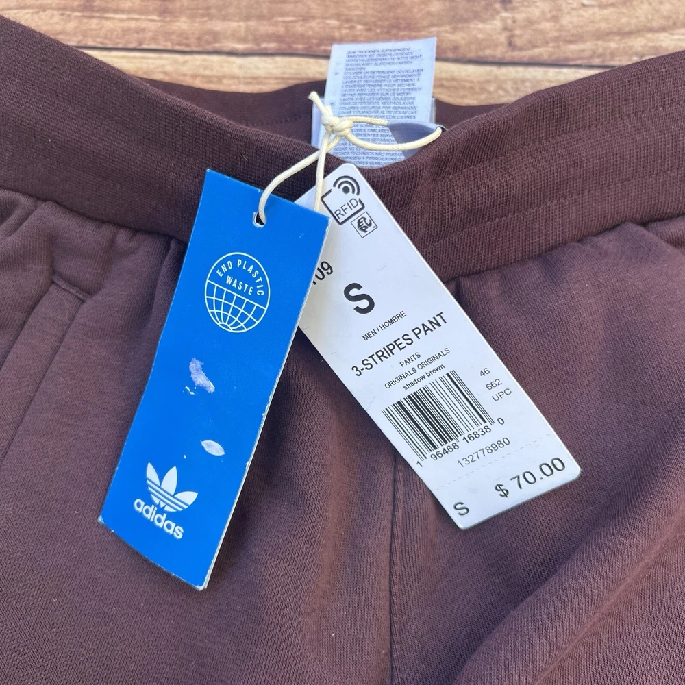 Elevate your casual wardrobe with these Adidas Originals IM2109 Men's 3-Stripes Slim Fit Brown Tapered Leg Pants in size S. The drawstring closure and flat front design provide a comfortable and stylish fit, while the fleece fabric and Adidas logo accents add a touch of personality. These sweatpants are perfect for a casual occasion and are made of 30% polyester and 70% cotton for a durable and comfortable wear. The slimming feature of these pants provides a flattering silhouette, and the tapered leg style and 26-inch inseam add a modern touch. These pants are a solid addition to any wardrobe and are suitable for men of all ages. Made in Pakistan and part of the Adidas product line, these pants are a must-have for any fan of the brand.