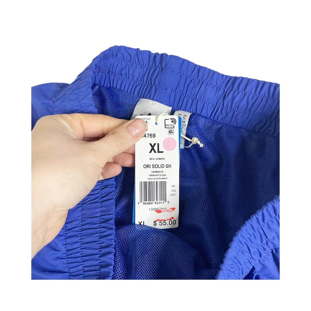Looking for a comfortable and stylish swim trunk? Look no further than these Adidas Originals Essential Solid Swim Trunks in size XL. With a solid blue color and classic theme, these trunks are perfect for any recreational water activity. The trunks are made of 100% polyester twill fabric, which is lightweight, water-repellent, and breathable. They feature a comfortable elastic waistband and a drawstring for an adjustable fit. The trunks also have convenient pockets and are lined with polyester for added comfort. Machine washable for easy care. msrp $55 All Measurements Are Approximate Please email us with any questions! ** LIKE THE ITEM BUT NOT THE PRICE, REASONABLE OFFERS ACCEPTED We stand by our clothing items and strive to make every purchase perfect, please reach out if you have an issue with an order before leaving negative feedback Every Purchase Gets Us closer to our dream of a brick and mortar store!!!