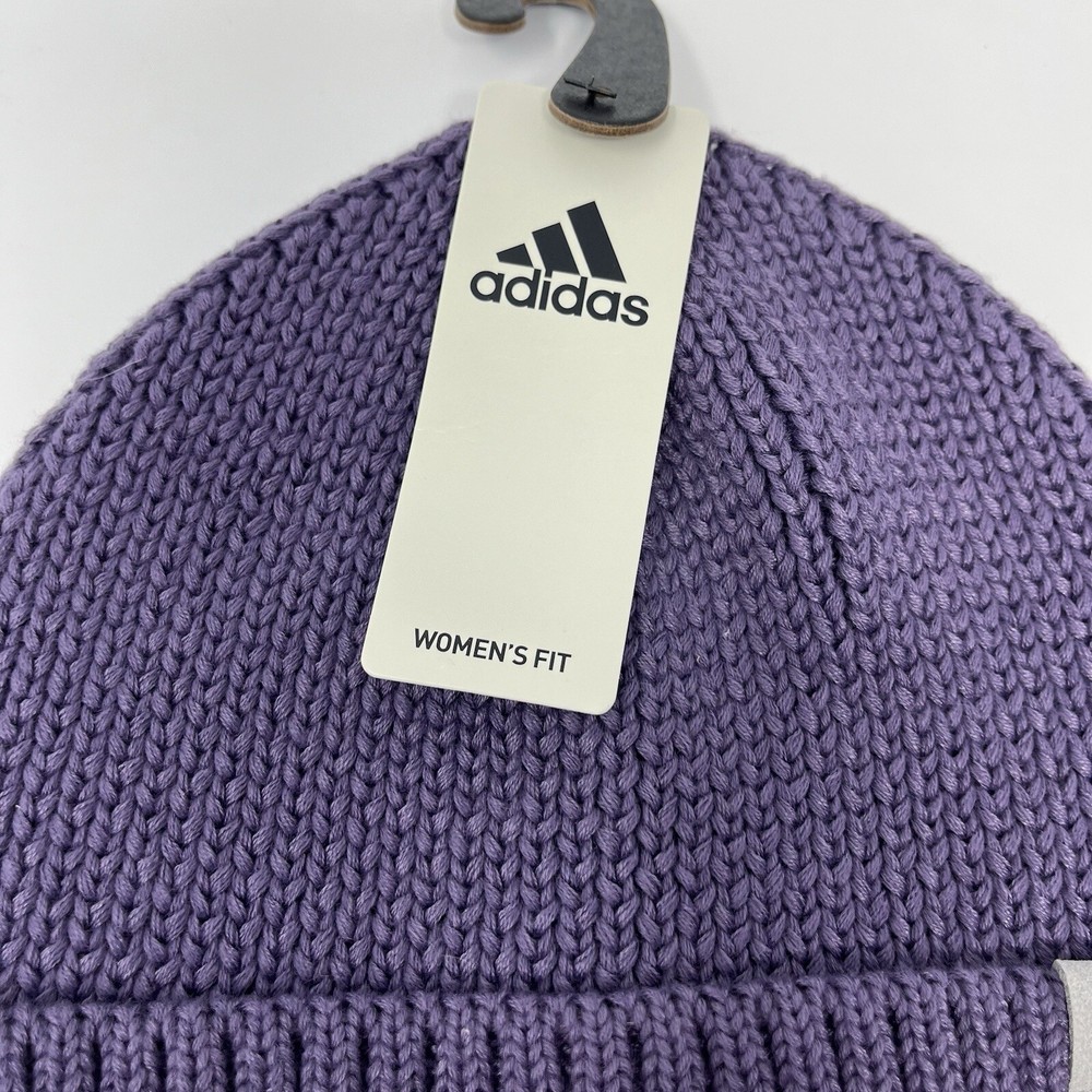 Adidas Originals Women’s Cuffed Fold Beanie Winter Hat Cap Toboggan Knit Purple