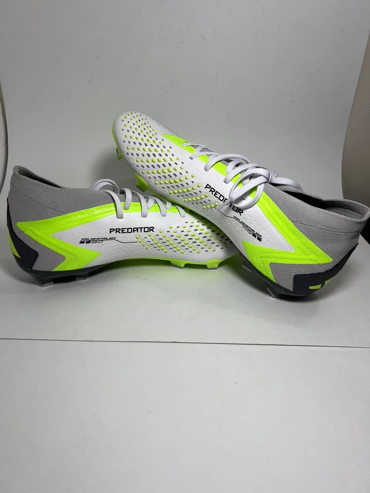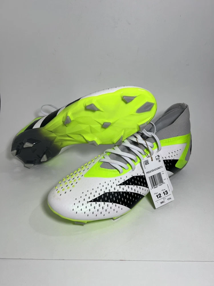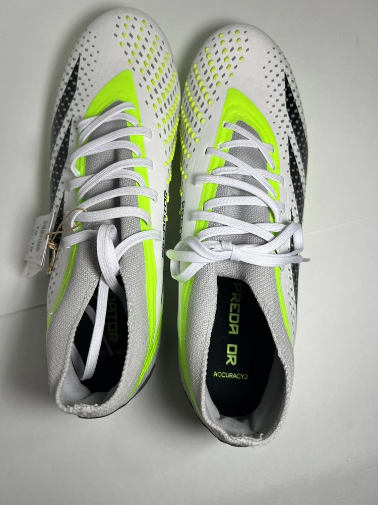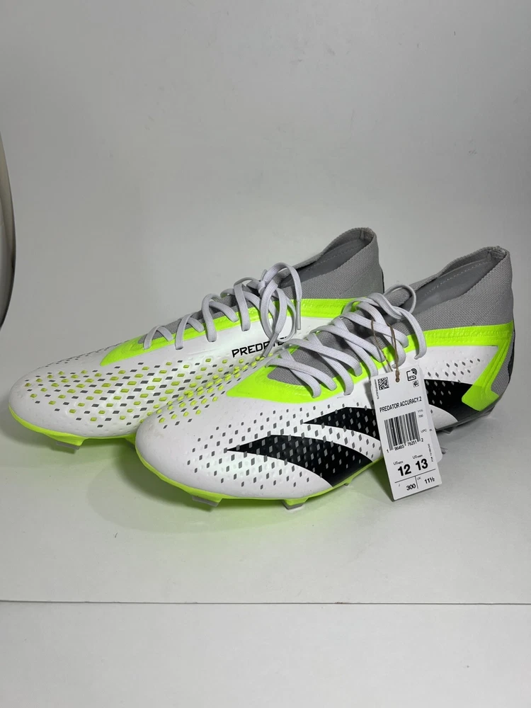 The Adidas Predator Accuracy.2 FG Soccer Cleats Shoes in White (Style Code: GZ0028) are designed for soccer players looking for precision and control on the field. This model, part of the Adidas Predator line, features a US size 12 with a medium width (D, M). The cleats are ideal for soccer enthusiasts who value both style and performance, with the iconic Adidas branding showcasing a commitment to quality and innovation in sporting footwear.