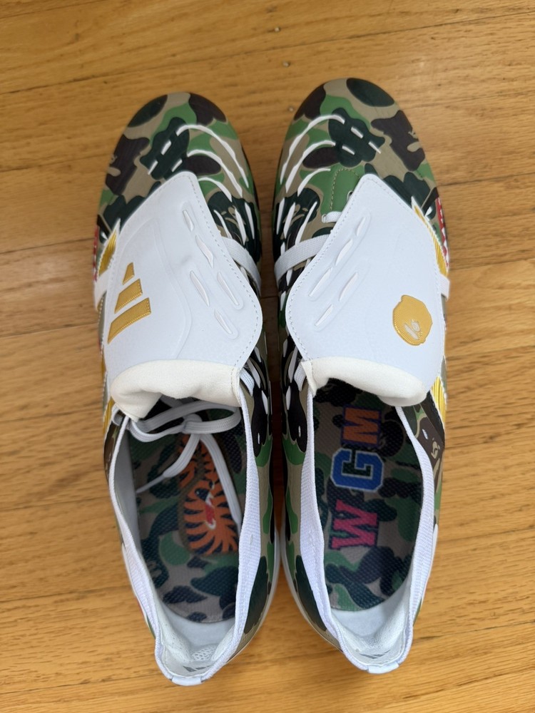 The Adidas Predator Elite FG x Bape Green in US size 10 is a sought-after combination of Adidas and Bape styles, offering a unique and trendy look for soccer players. These cleats in green color are designed for the sport of soccer, with a medium width for a comfortable fit. Made in Indonesia, these cleats are a must-have for any fan of both Adidas and Bape looking to make a statement on the field. Plus, with free shipping included, it's a great value for anyone looking to elevate their soccer game.