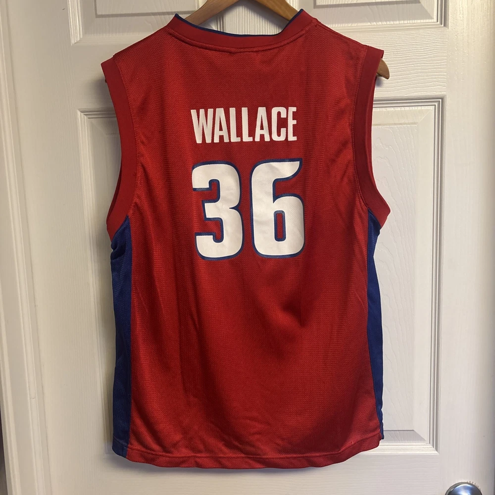 The product is an adidas jersey of Rasheed Wallace, a player for the Detroit Pistons in the NBA. It is a red jersey in size XL. The jersey is an authentic NBA product.