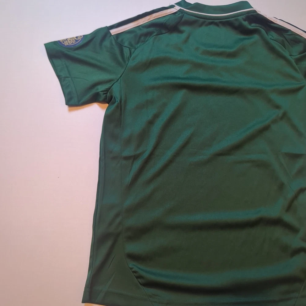 This Adidas soccer jersey is a must-have for any young player who wants to look and feel like a pro. The green jersey features the iconic Adidas logo and the Real Madrid team crest, making it a perfect addition to any soccer fan's collection. The short-sleeve jersey is made from high-quality materials that ensure comfort and durability, making it ideal for both indoor and outdoor play. The unisex jersey is available in youth medium size and is perfect for soccer, football, and futbol players of all levels. The 110-year patch adds a touch of class to the jersey, making it an excellent choice for any occasion. This jersey is a great way to show your support for your favorite team and to show off your love for soccer.