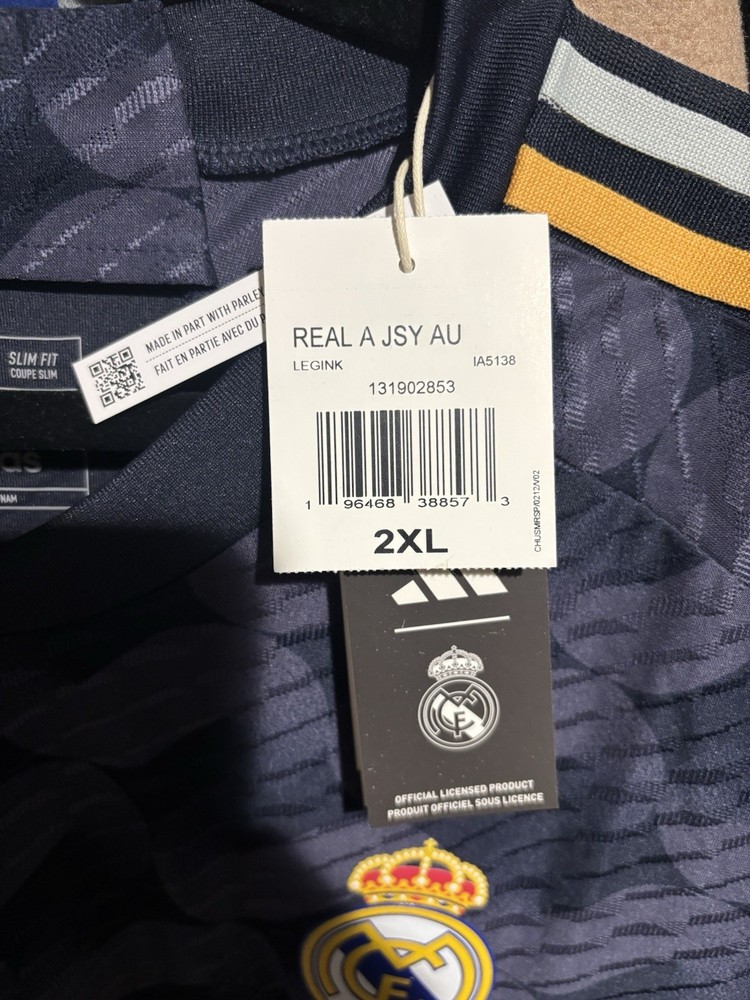 Team: Real Madrid Color: Navy Size: 2XL Brand: adidas Officially Licensed: Yes Sport: Soccer Product: Jersey Gender: Men