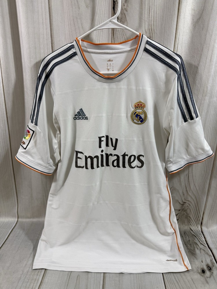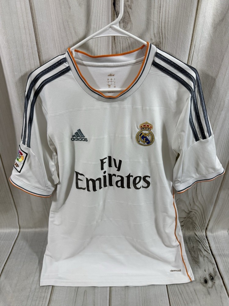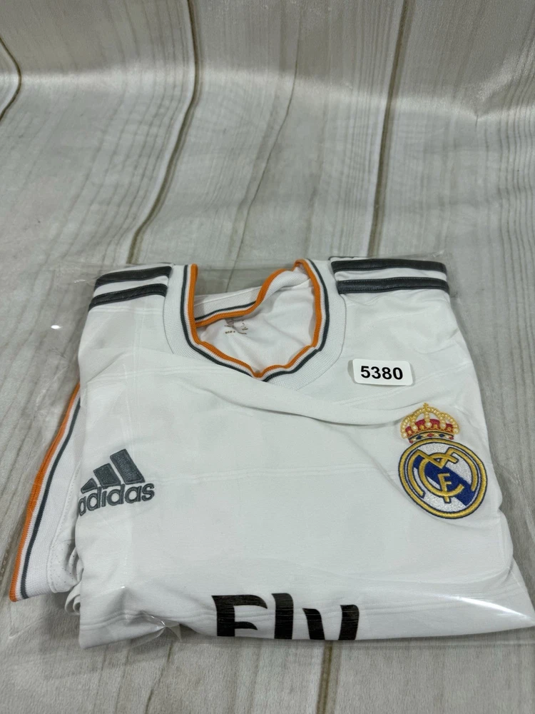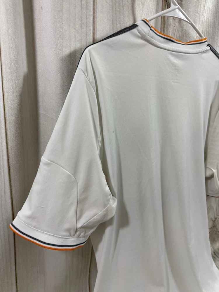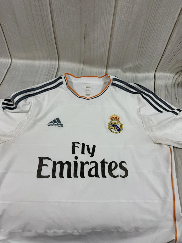 Team: Real Madrid Product: Shirt Size: L UPC: Does not apply Gender: Men Sport: Soccer Seller Notes: “Pre owned in good condition. some stains around arm pit that can be removed with deeper cleaning.” Brand: adidas Color: White gtin13: Does not apply Country of Origin: Ukraine Officially Licensed: Yes