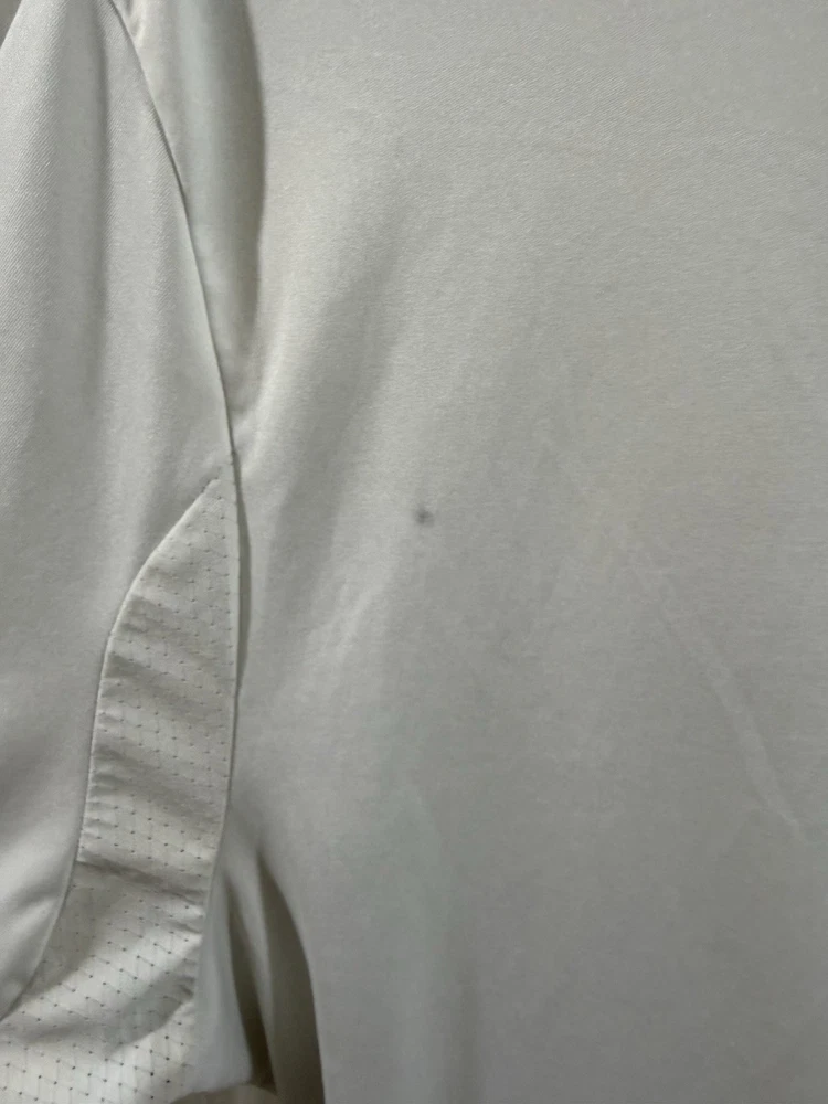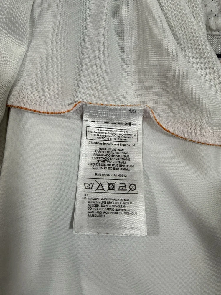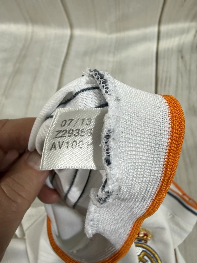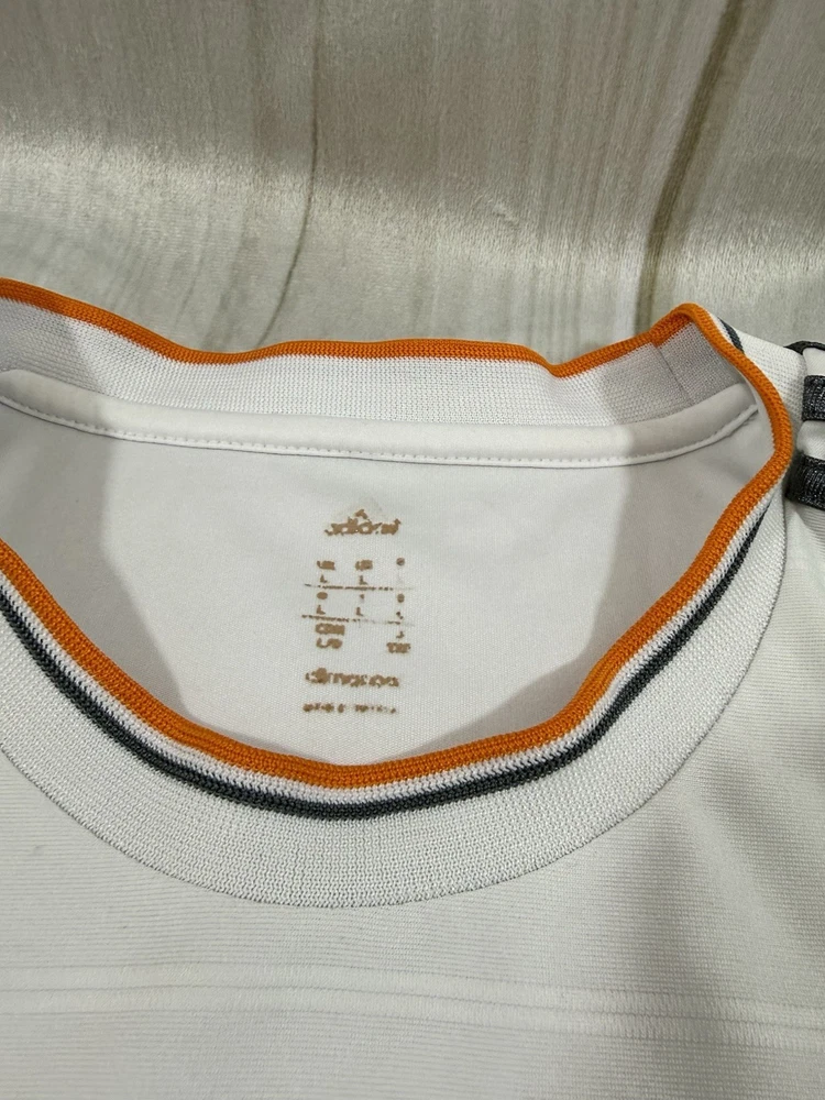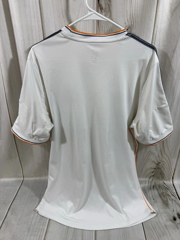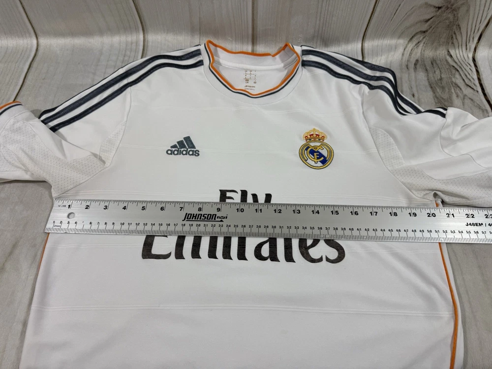 Team: Real Madrid Product: Shirt Size: L UPC: Does not apply Gender: Men Sport: Soccer Seller Notes: “Pre owned in good condition. some stains around arm pit that can be removed with deeper cleaning.” Brand: adidas Color: White gtin13: Does not apply Country of Origin: Ukraine Officially Licensed: Yes