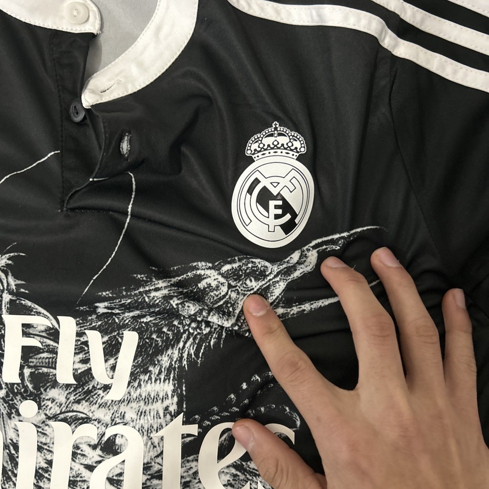 Product: Jersey Country of Origin: Jersey Sport: Soccer Gender: Men Color: Black Size: L Officially Licensed: Yes Brand: adidas Team: Real Madrid