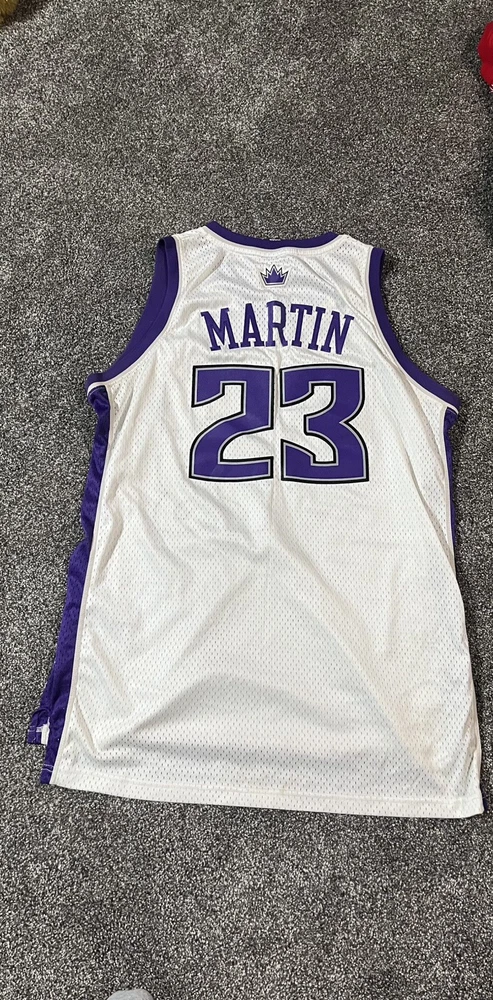 Show your love for the Sacramento Kings and Kevin Martin with this officially licensed Adidas jersey. The white jersey features the Kings' logo on the front and Martin's name and number on the back. Made for men and size XL, this jersey is perfect for any basketball fan. Represent your favorite team and player in style with this vintage Y2K NBA jersey. Whether you're heading to the game or just showing off your team spirit, this Adidas jersey is a must-have for any basketball enthusiast.