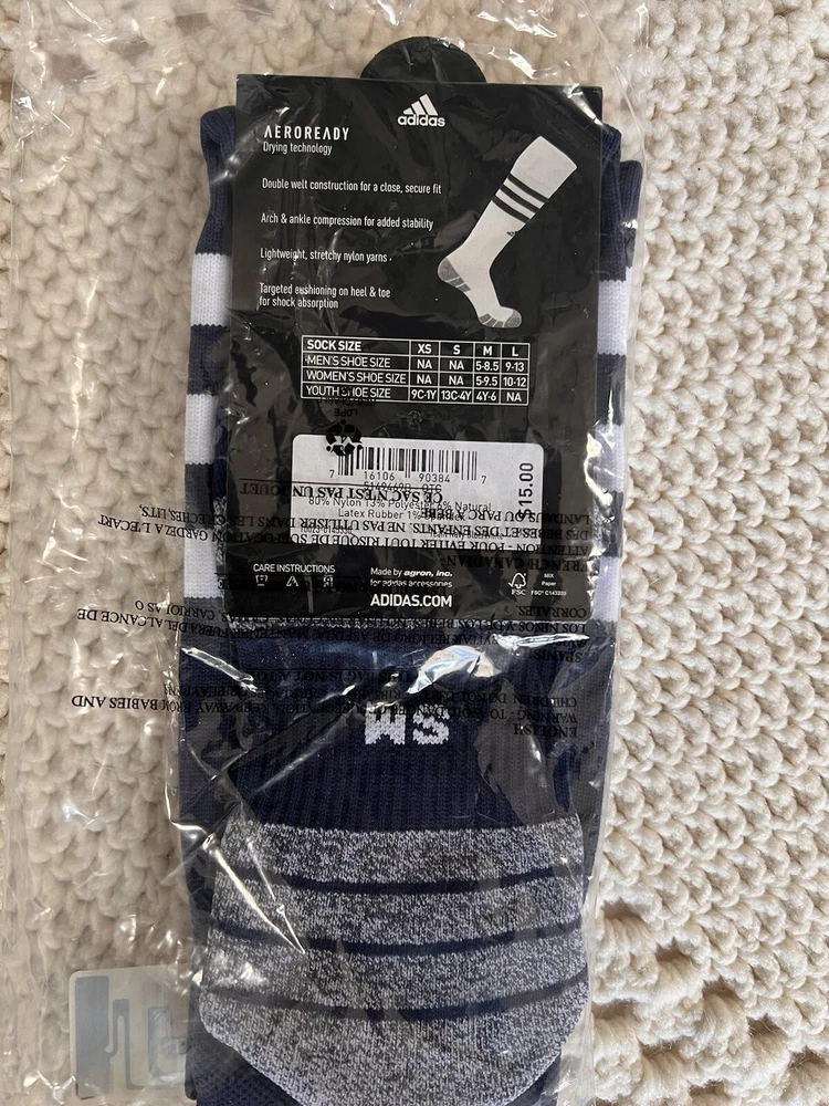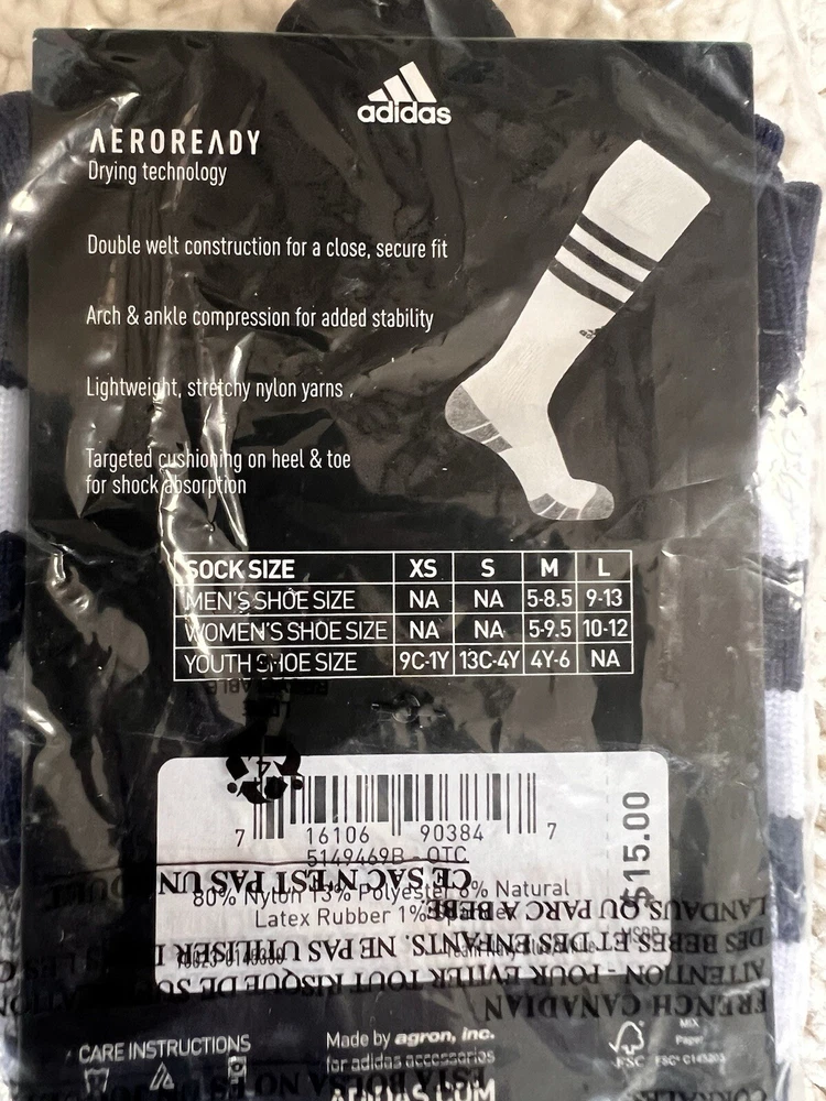 Elevate your soccer game with these Adidas Soccer Compression Socks in Navy Blue and White. Designed for both men and women, these over the calf socks are made with a blend of polyester and natural latex rubber for durability and comfort. The socks feature arch and ankle compression for a secure fit during the game, as well as targeted cushioning for added comfort. Machine washable and perfect for casual occasions, these socks are a must-have for any soccer player. The Adidas brand ensures quality and style, while the solid pattern and athletic style make them suitable for any sports-themed outfit. Get ready to dominate the field in these stylish and functional socks.