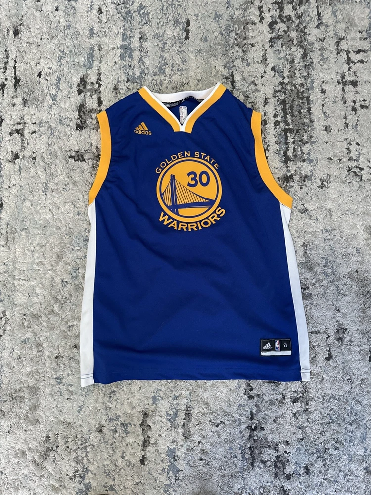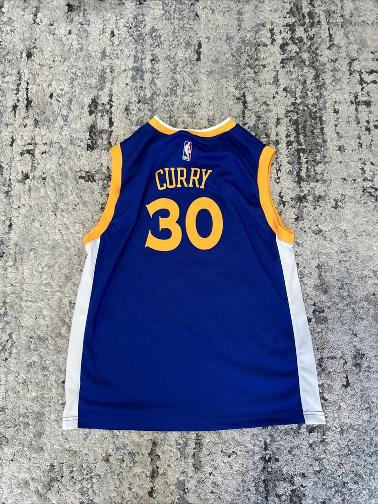 Used Golden State Warriors Steph Curry Adidas Blue XL Youth Swingman Jersey. Jersey is in great condition.